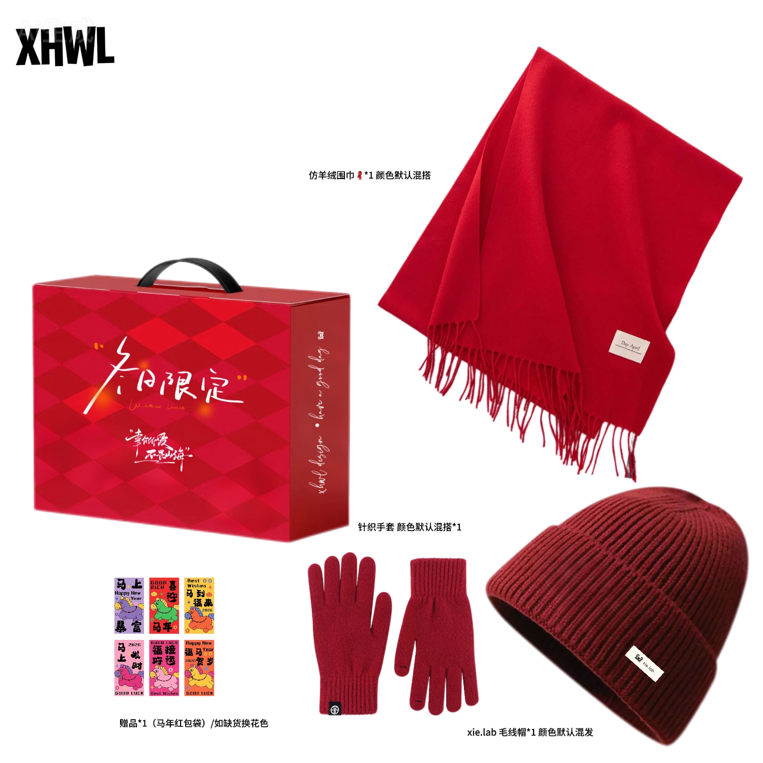 配置清单:红色礼盒*1 针织毛线手套*1 针织帽*1(颜色混发) 秋冬款马卡龙纯色仿羊绒围巾*1 马年红包袋*1