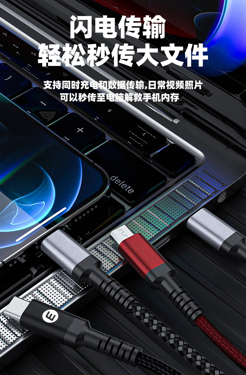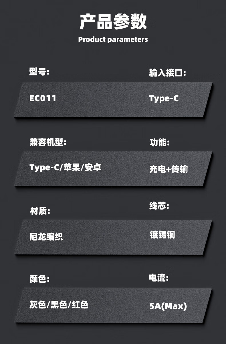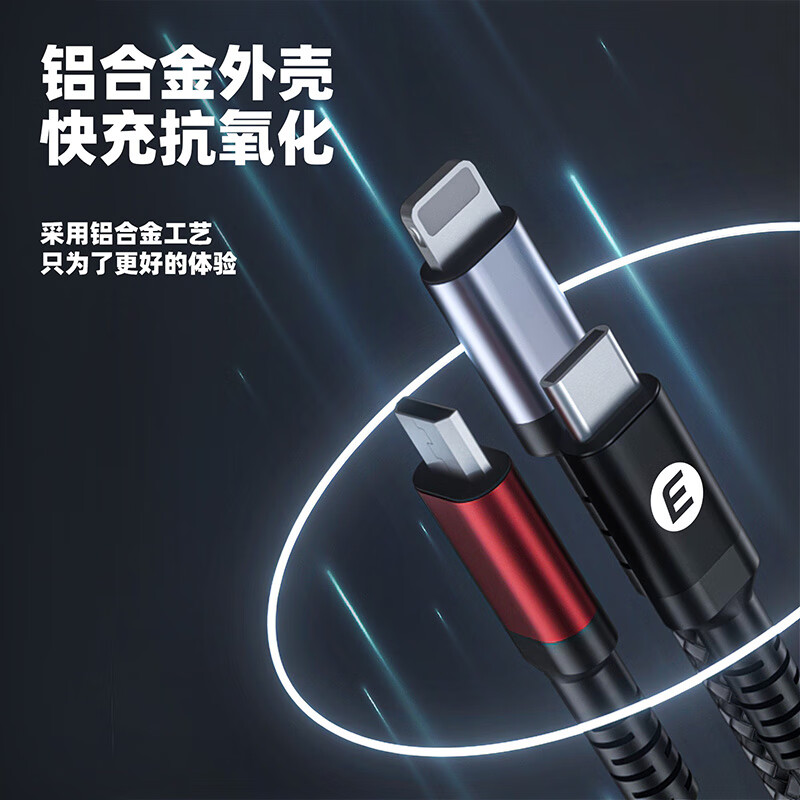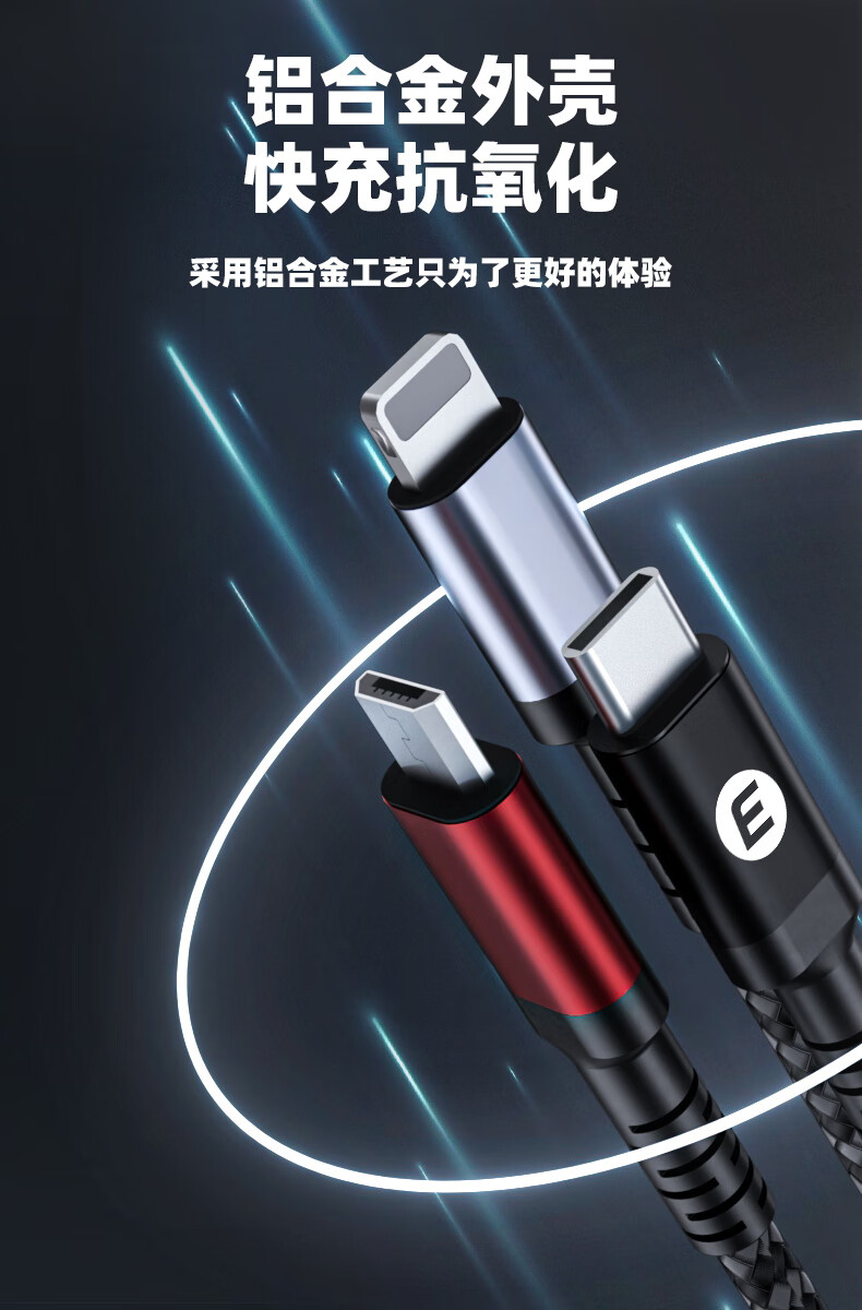 5A大电流,高效传输 耐用抗弯折;铝合金外壳 快充抗氧化;尼龙精编线 品质保障