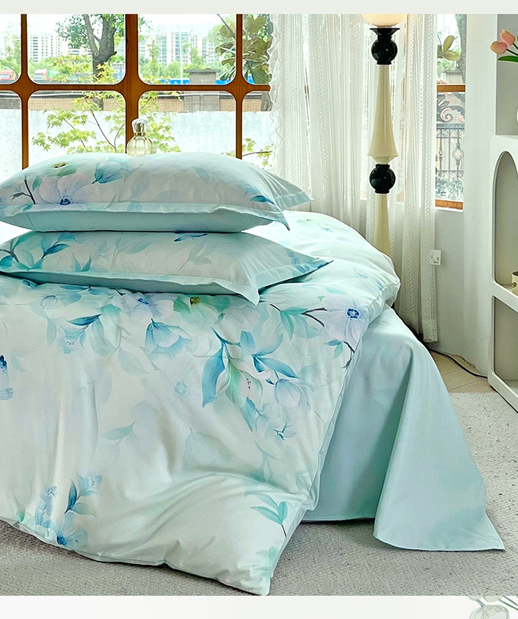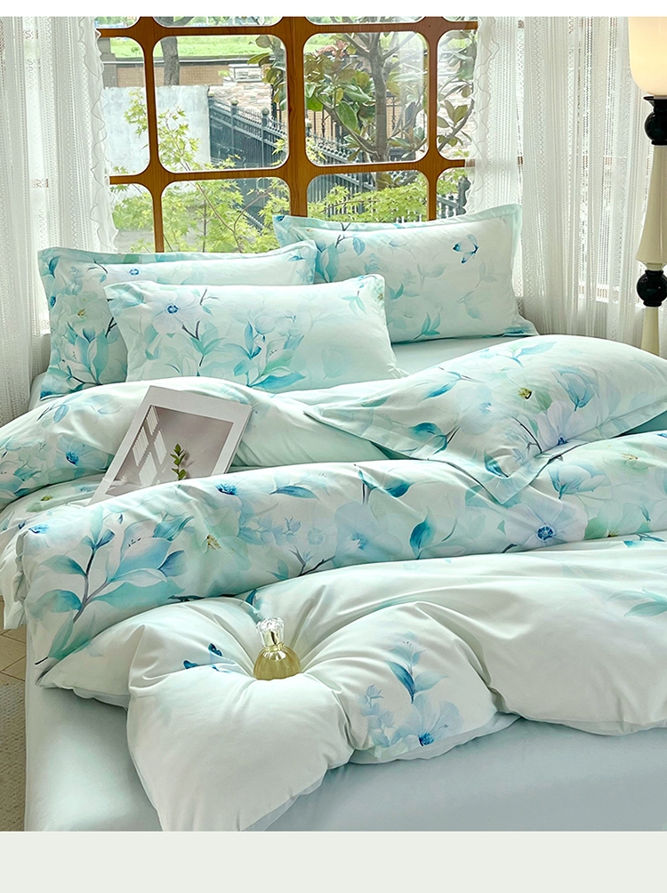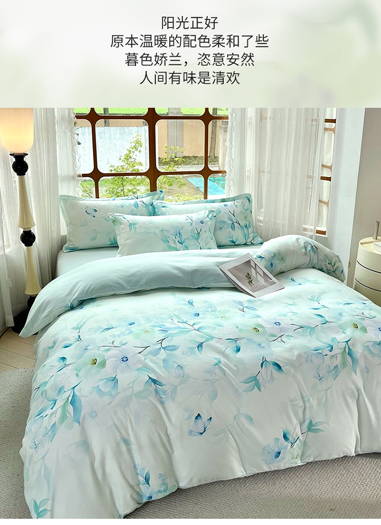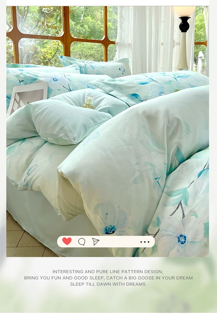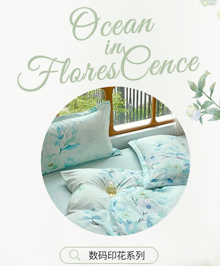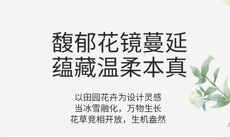 花海梦境 丝滑好眠 数码印花四件套 自然亲肤;以田园花卉为设计灵感当冰雪融化,万物生长花草竞相;AB双版设计,充满生机的自然景色在每次翻身感受布料