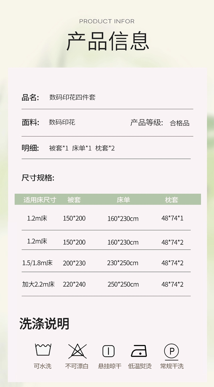 床品工艺:磨毛,数码印花,其他