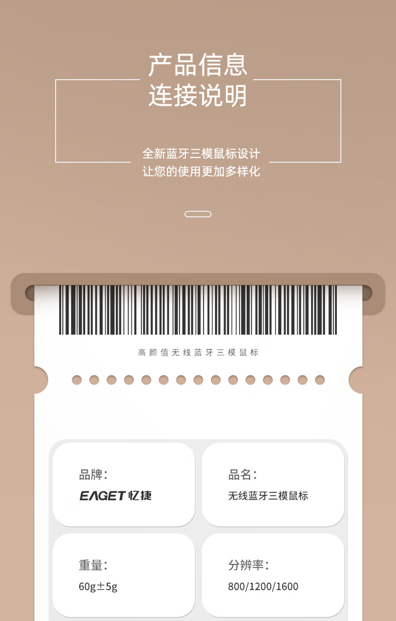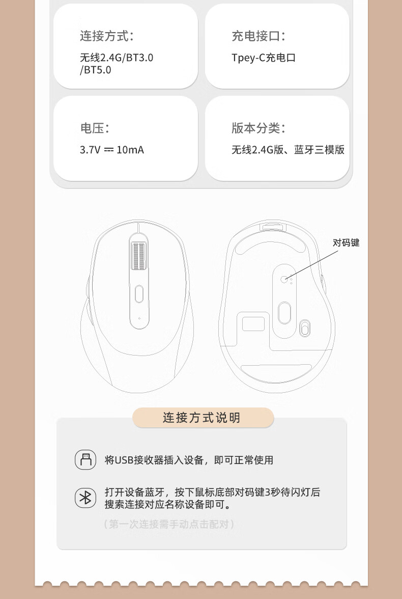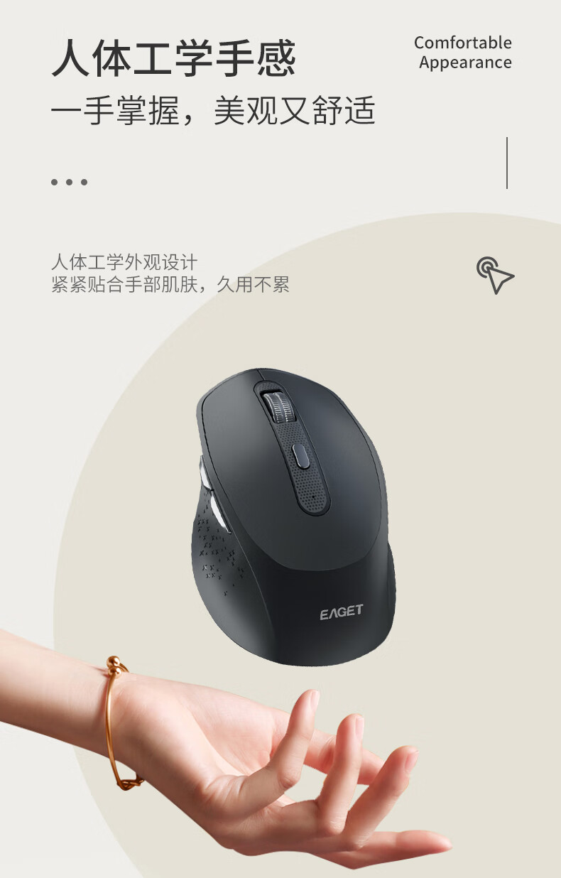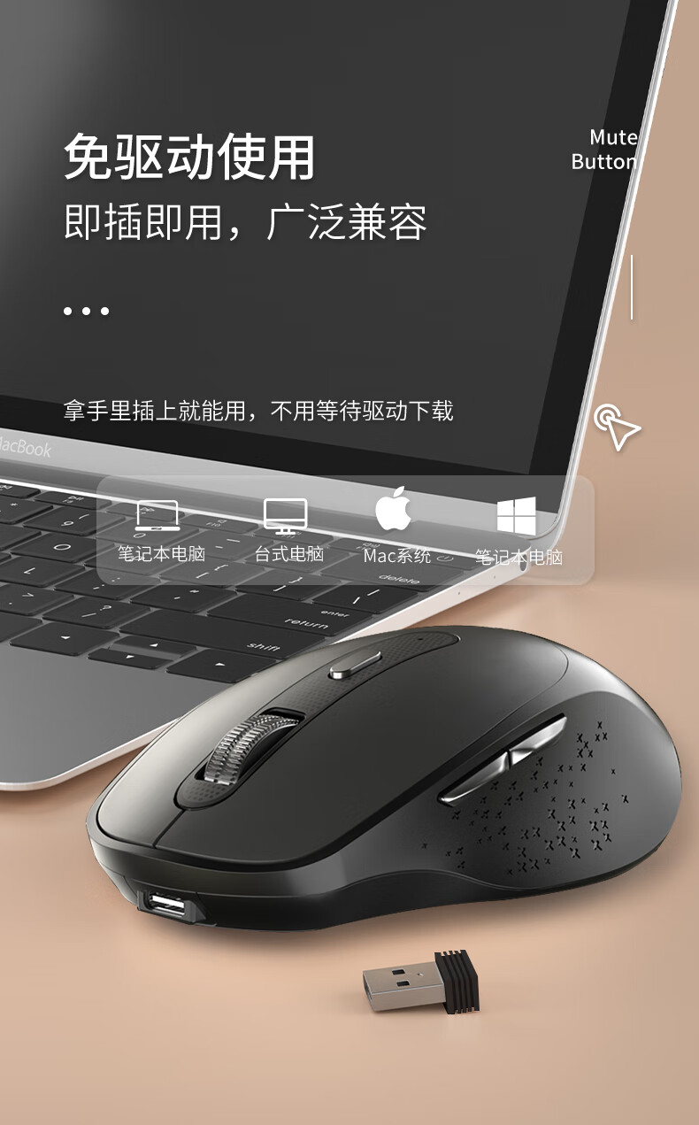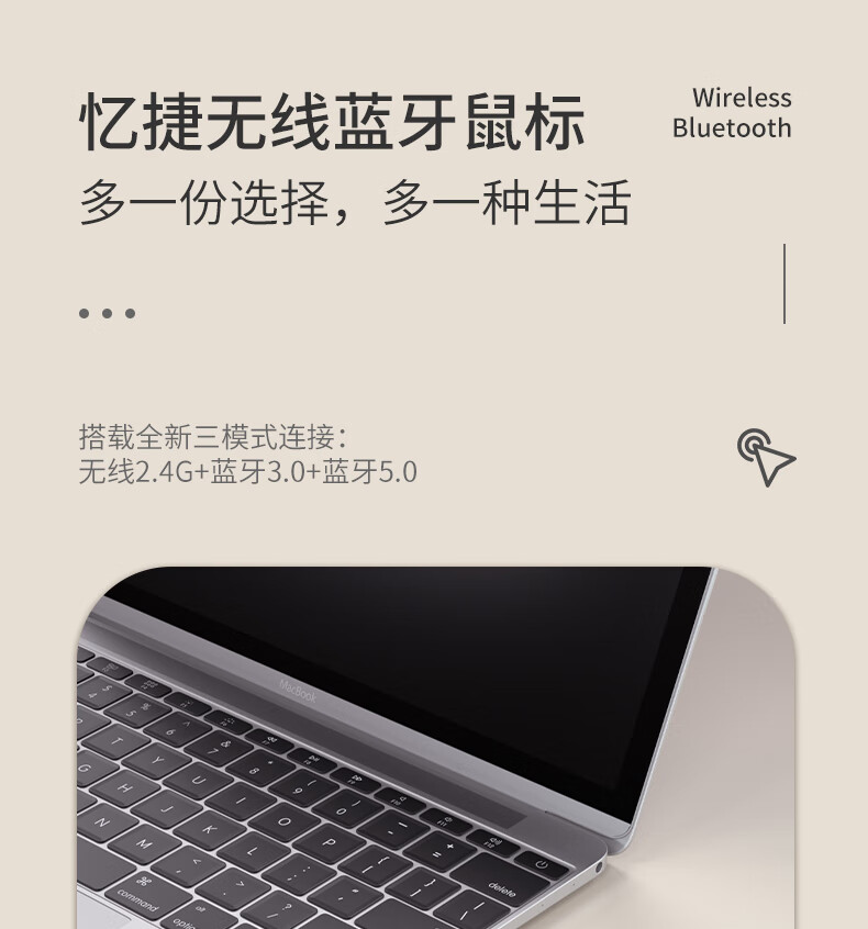 三模蓝牙,无线+蓝牙5.0+蓝牙4.0;人体工学设计手感舒适,;即插即用,广泛兼容