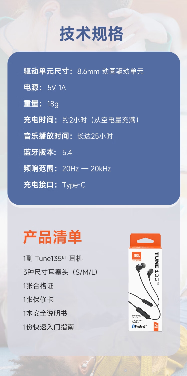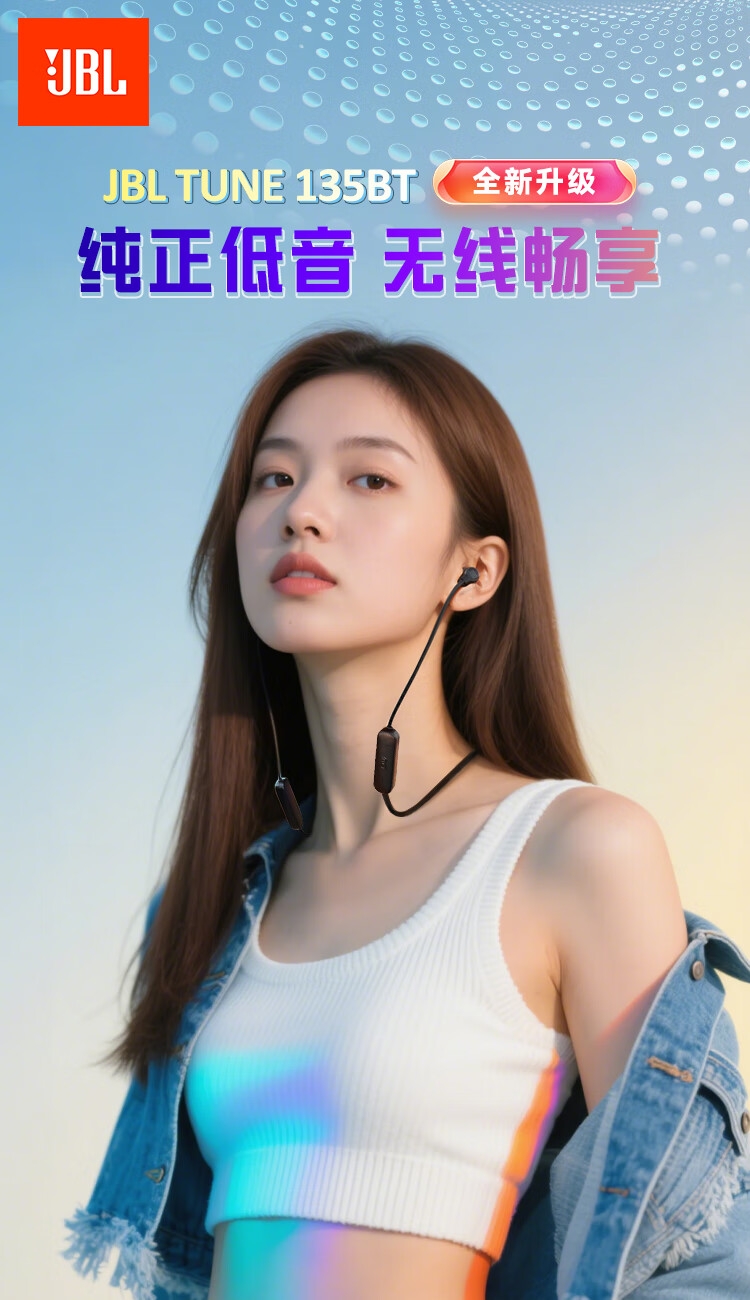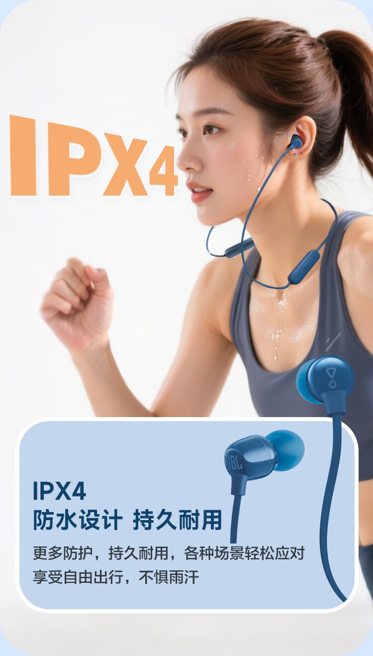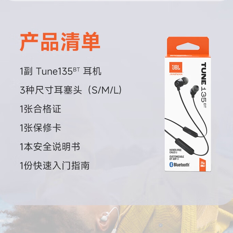 JBL 蓝牙无线耳机颈挂式运动耳机TUNE135BT