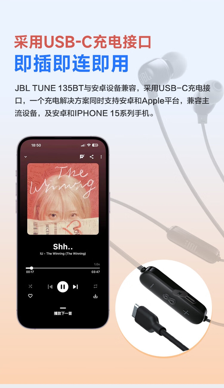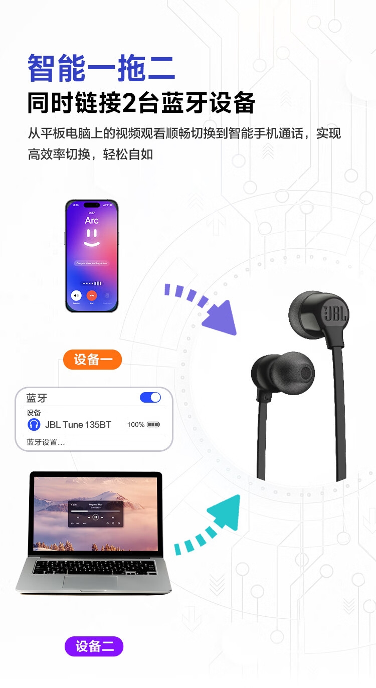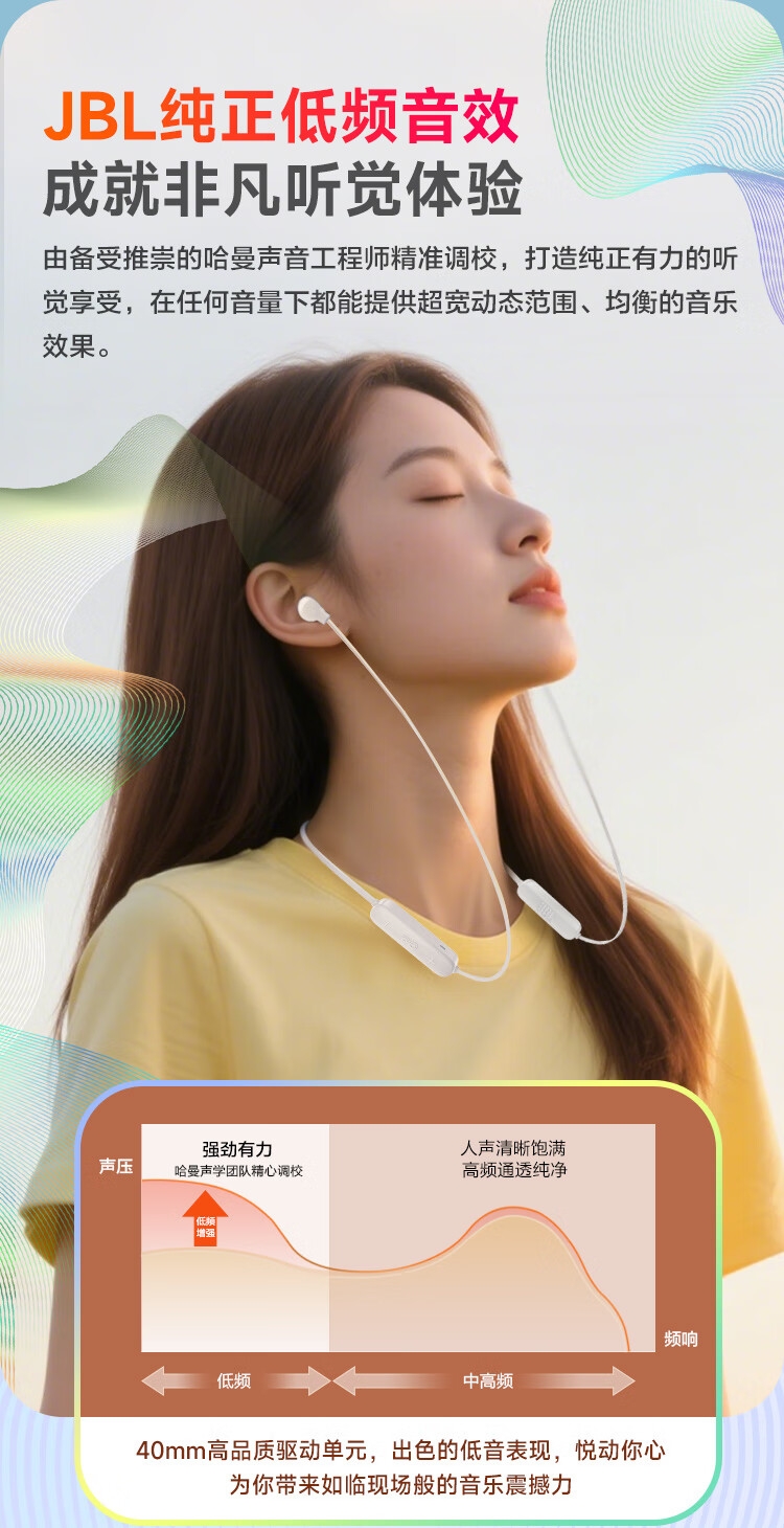 JBL 蓝牙无线耳机颈挂式运动耳机TUNE135BT