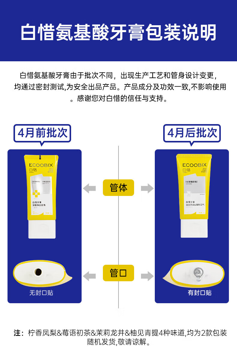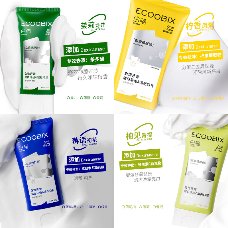 白惜 牙膏四口味组合4支益生菌