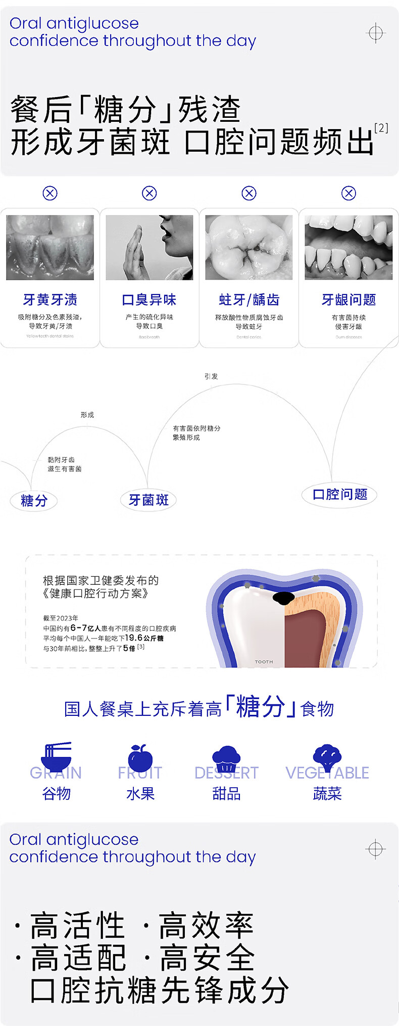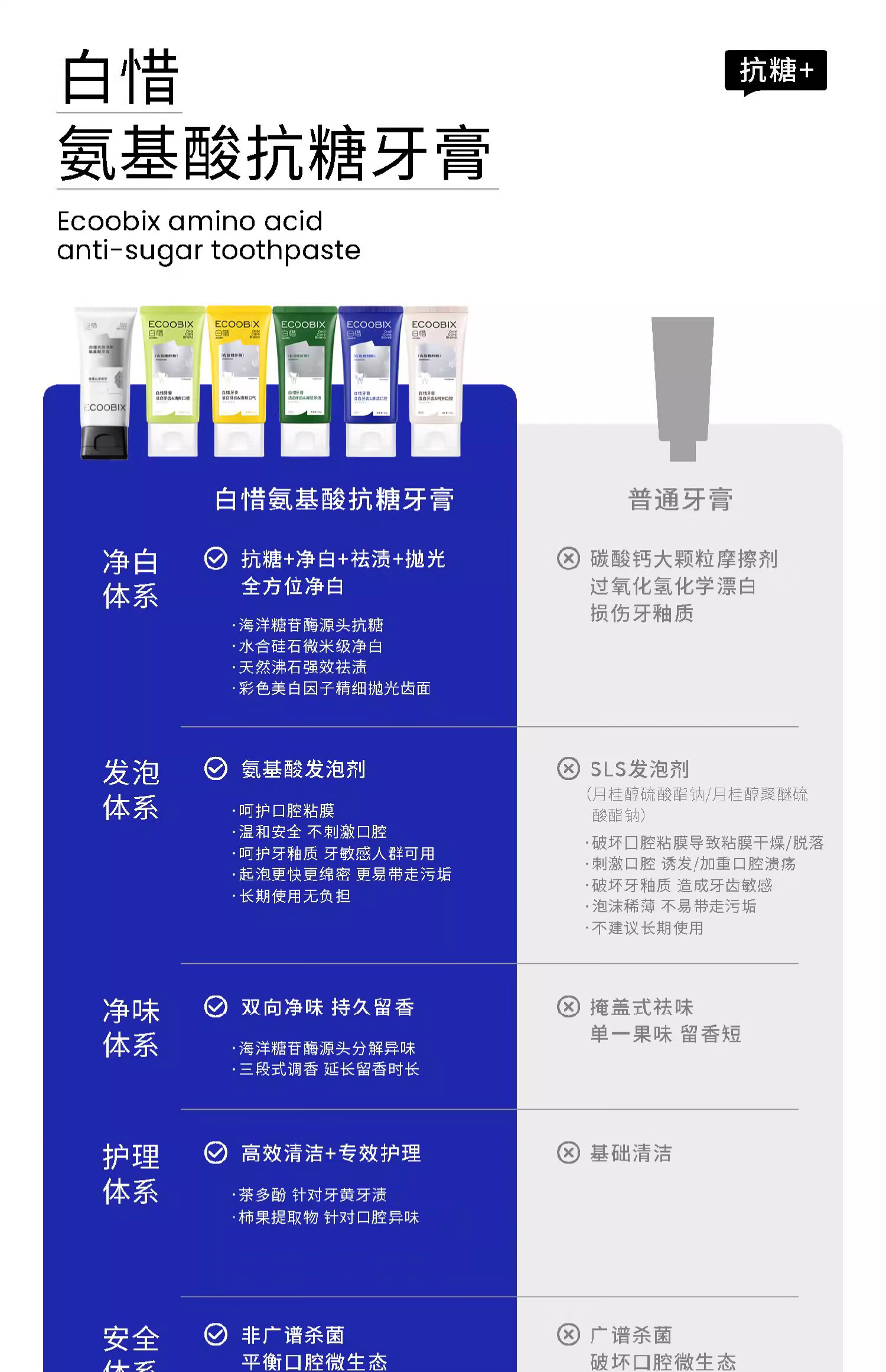 氨基酸含氟;抗糖清洁新口臭气;益生菌