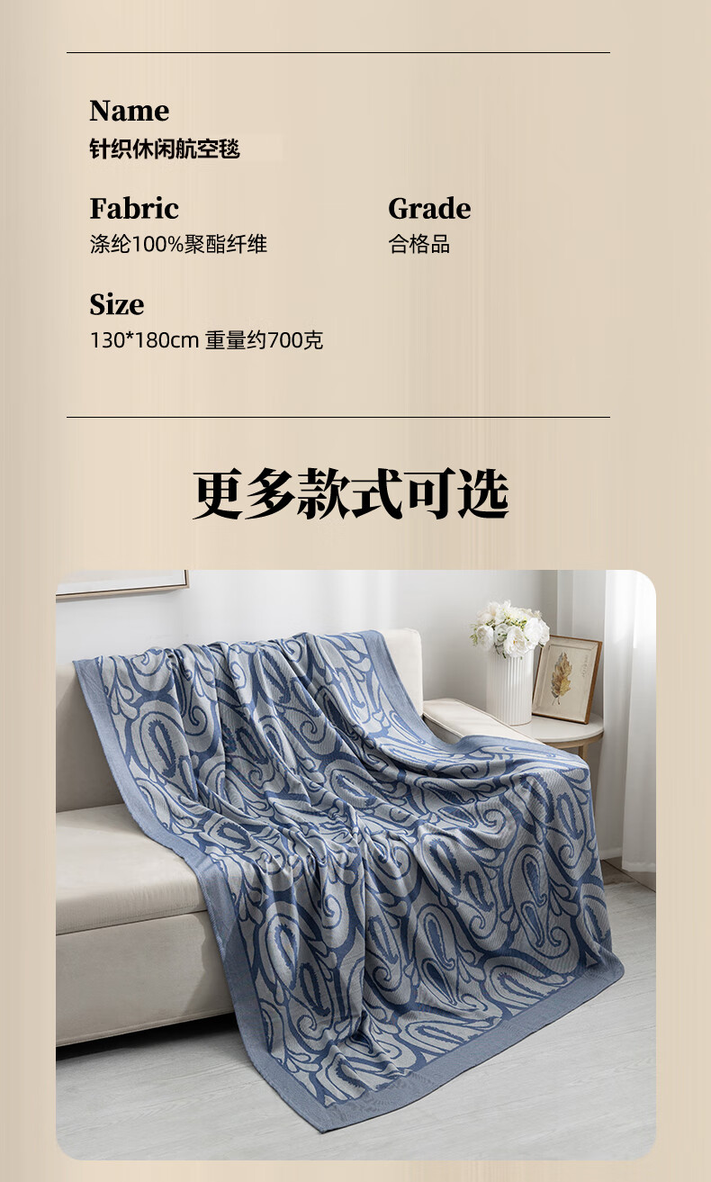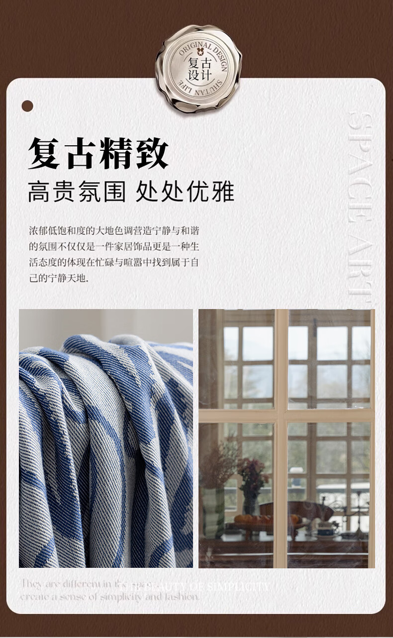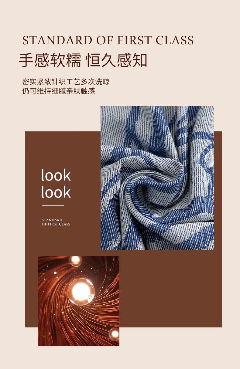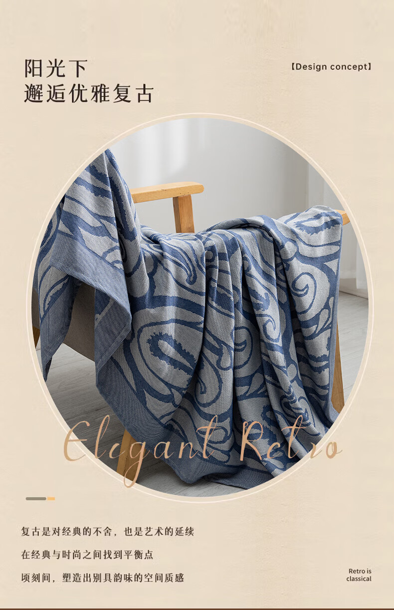 柔软舒适,吸湿透气,一毯多用;复古是对经典的不舍,也是艺术的延续,;在经典与时尚之间找到平衡点顷刻间,塑造出别具韵味