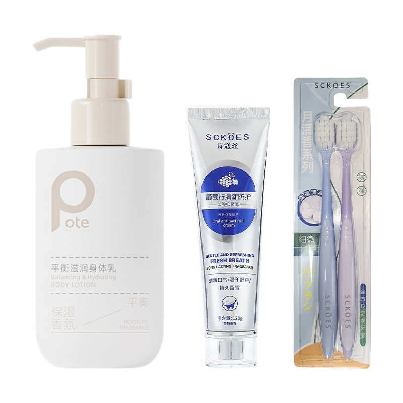 配置清单: 柏缇氨基酸北非雪松洗发露580ml 柏缇氨基酸海盐净澈沐浴液580ml 柏缇海藻维生素E护发素505ml 洁丽雅&诗寇丝臻品长绒棉毛巾(颜色随机)70g Sckoes诗寇丝葡萄籽清新防护牙膏120g Sckoes诗寇丝细毛牙刷双支装 Sckoes诗寇丝天然5D香氛洗衣凝珠18颗 Sckoes诗寇丝APG超浓缩洗洁精505g TangXi唐茜莫奈花园七元酶内衣洗衣液350g SukGarden蔬果园茶香泡泡洗手液500ml 小仓熊香氛洁厕液(蜜桃香)450g 柏缇身体乳液200ml 鸿运当头紫罗兰绿植养护卡片(赠) 全球臻选精美礼盒-JXLH004
