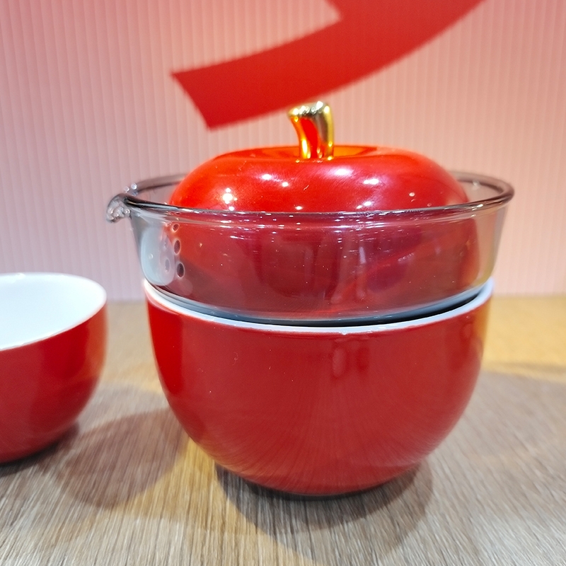 苹果造型快客茶具,融入“平安”祝福;简约线条重塑茶具,壶钮金叶点睛添彩;哑光釉面温润,寓意岁月温暖相伴