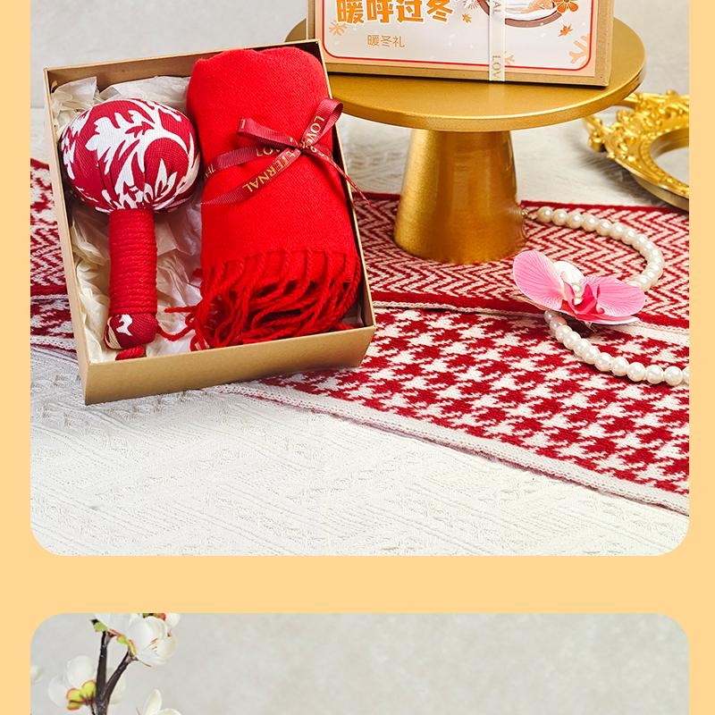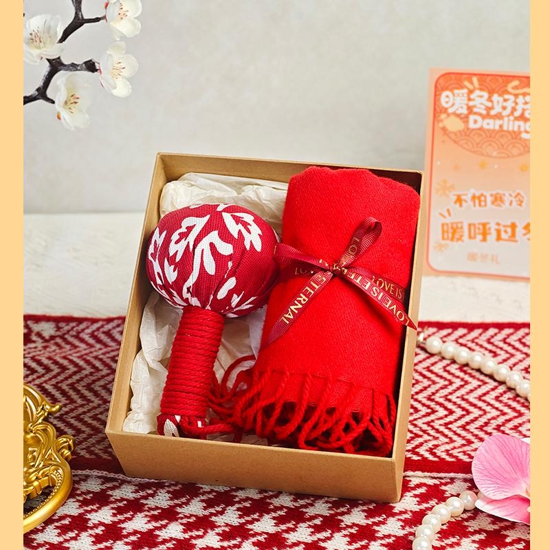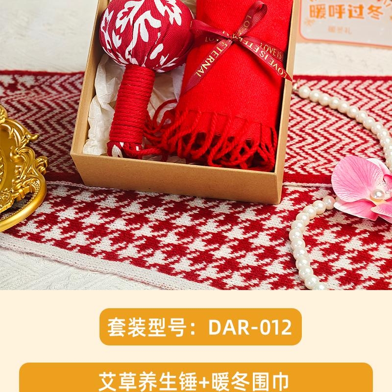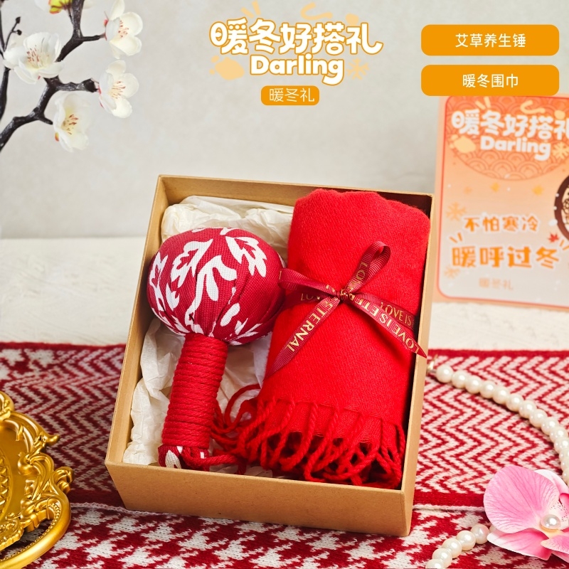 组合:艾草养生锤、暖冬围巾、牛皮绑绳礼盒+暖冬贺卡