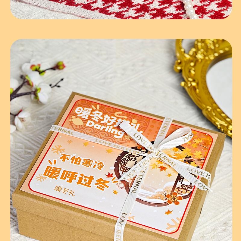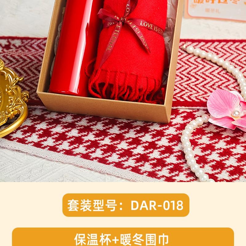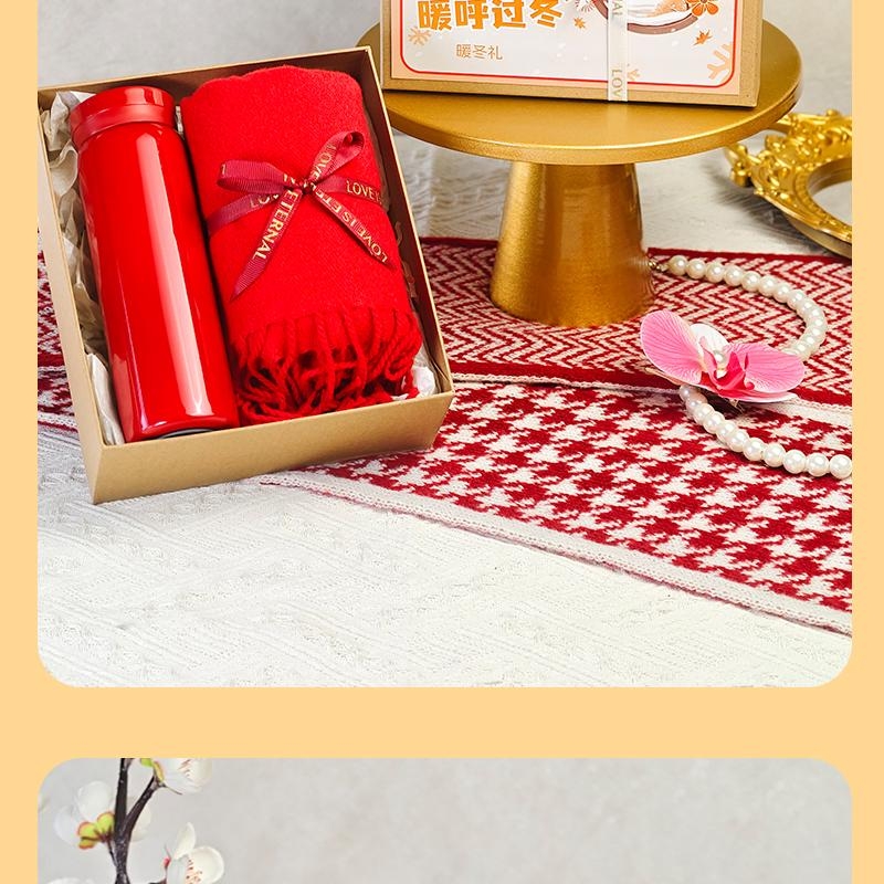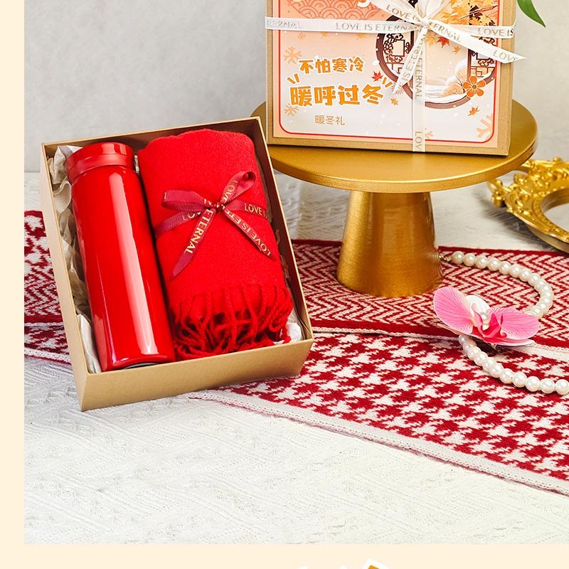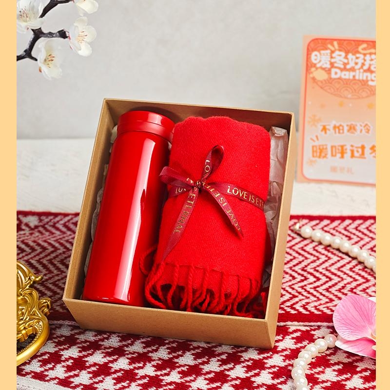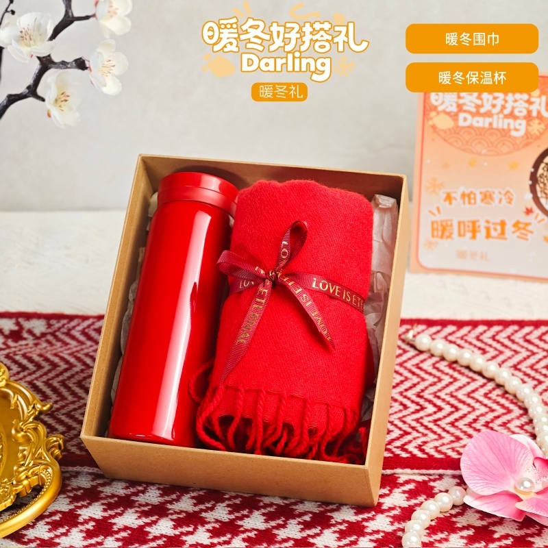 组合:保温杯300ml、暖冬围巾、牛皮绑绳礼盒+暖冬贺卡