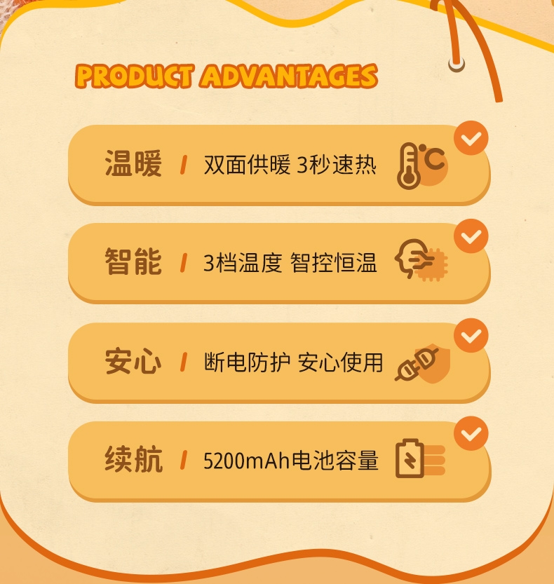 材质细腻导热快,尺寸适中便于携带;自动断电保护,贴心更安全;智能控温,恒温控暖