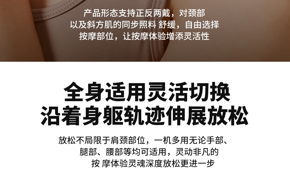 模拟真人按摩手法,释放紧张情绪,放松身心;1200mAh大容量电池,续航能力出色; 按摩枕采用温和的按摩手法,温暖颈部,缓解肌肉僵硬