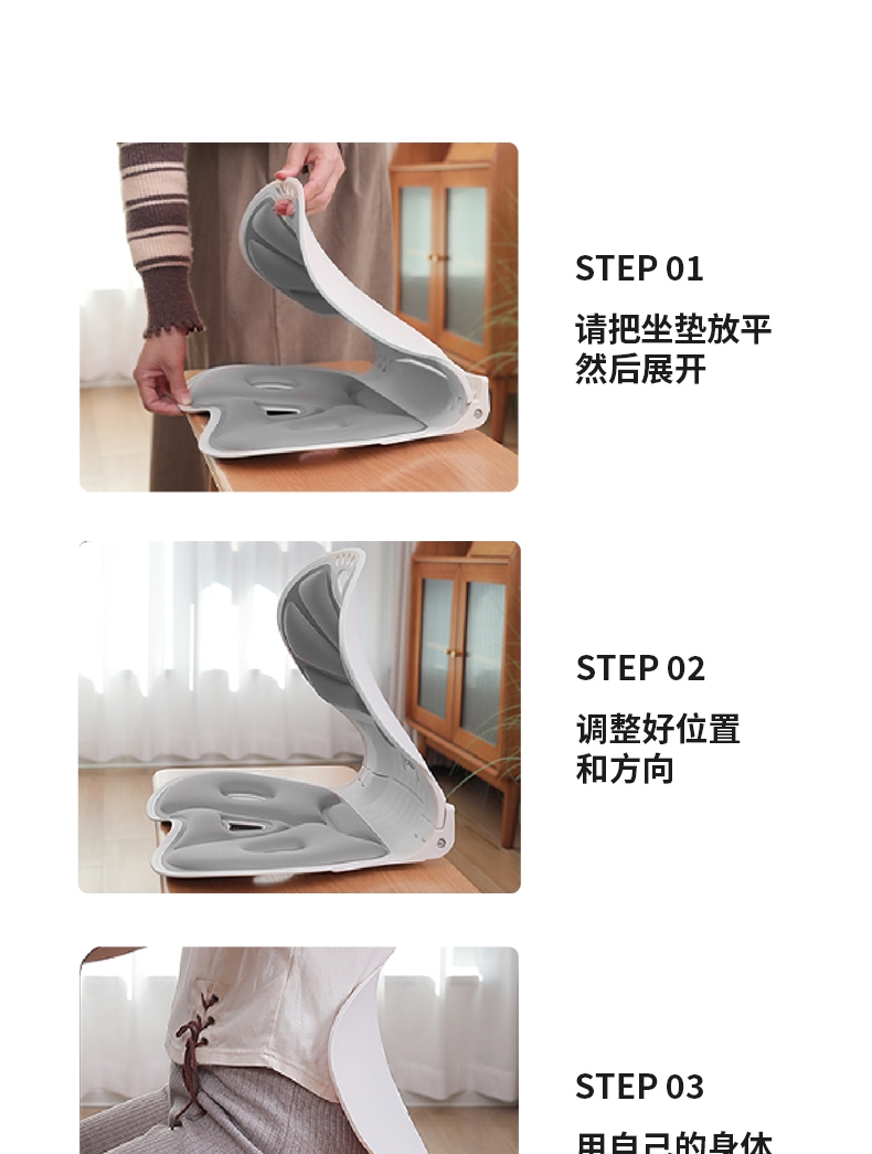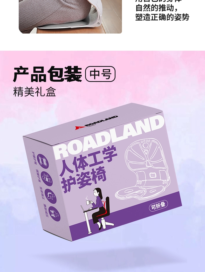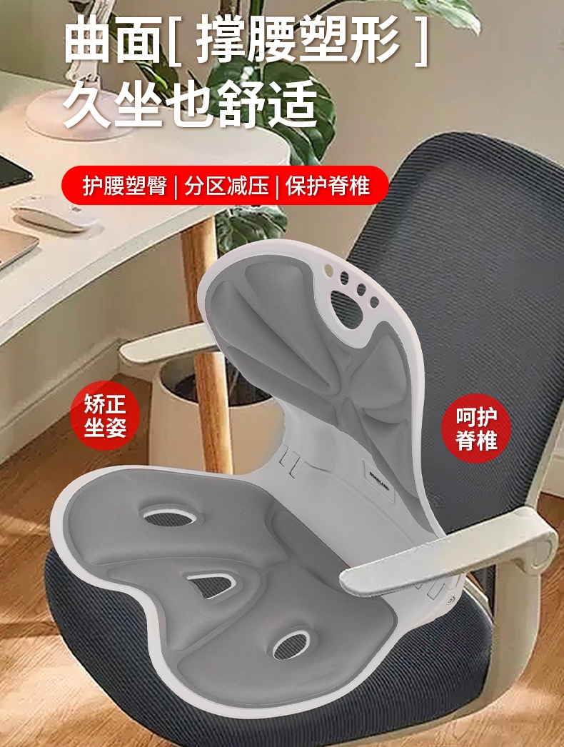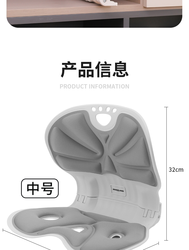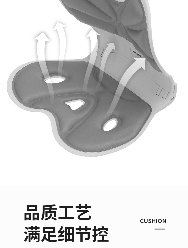 人体工程学分区支撑系统 全方位支撑您的腰背,保持正;可折叠设计 轻量便携出门;通风循环孔 柔软回弹记忆棉