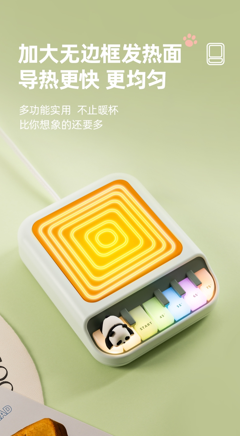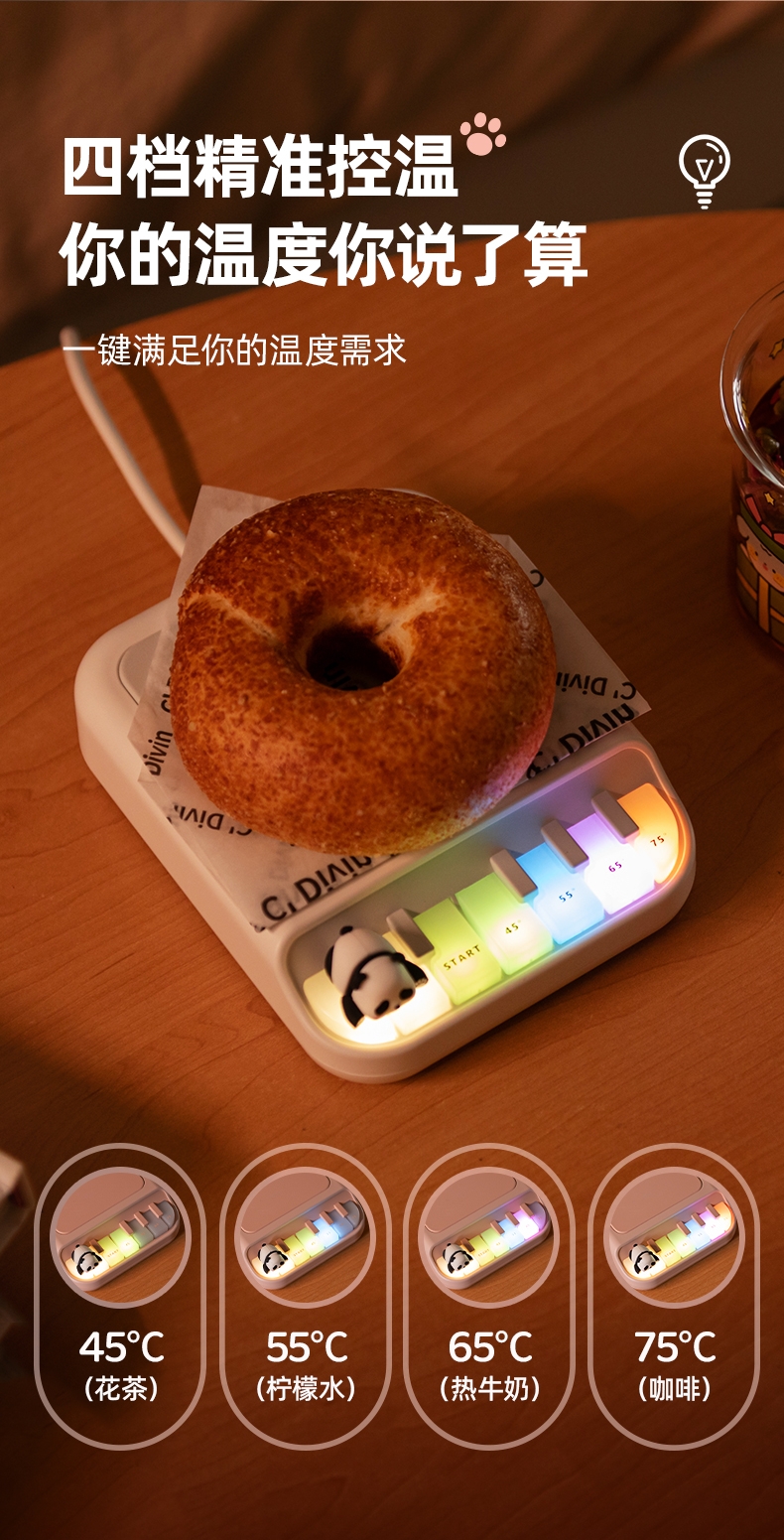 创意钢琴键、四档调温、快速升温;可爱解压熊猫、高级感夜灯、定时关机;支持小批量定制