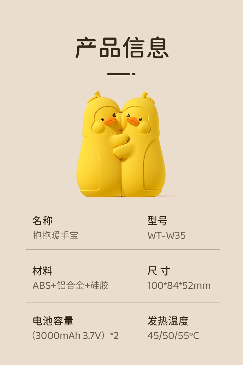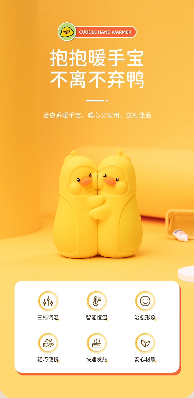 右心 抱抱鸭暖手宝磁吸暖手宝一分为二WT-W35