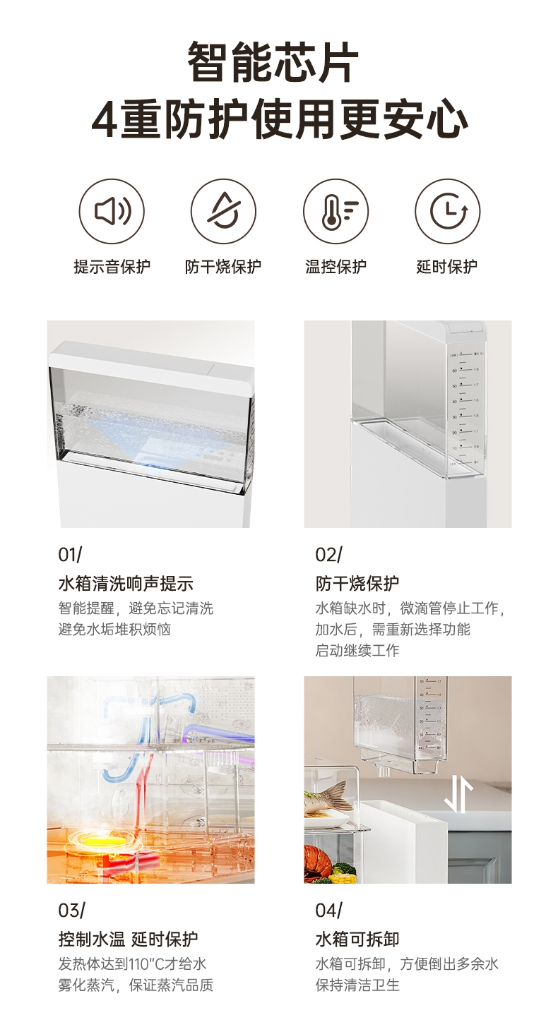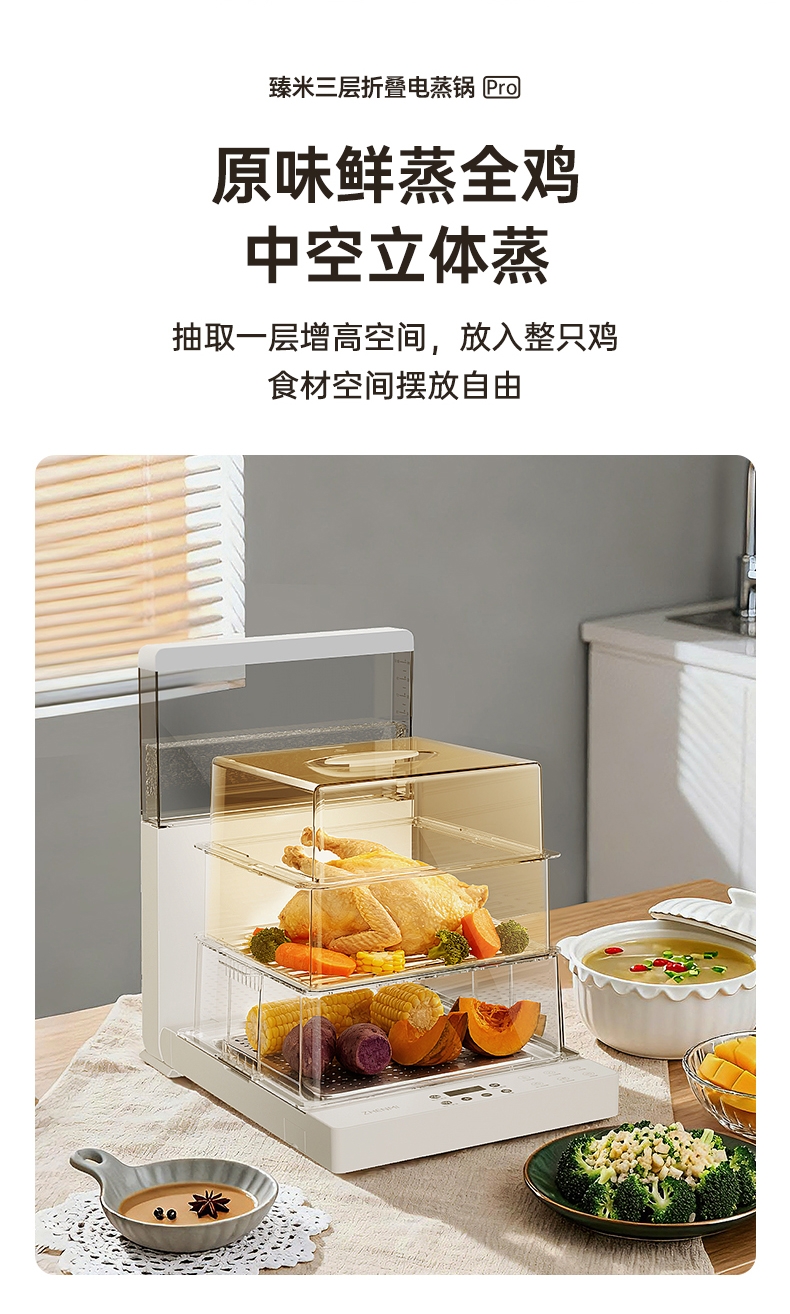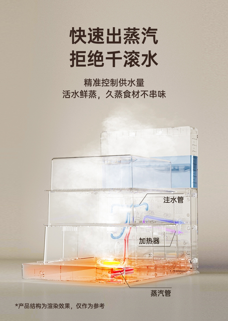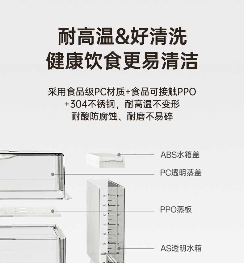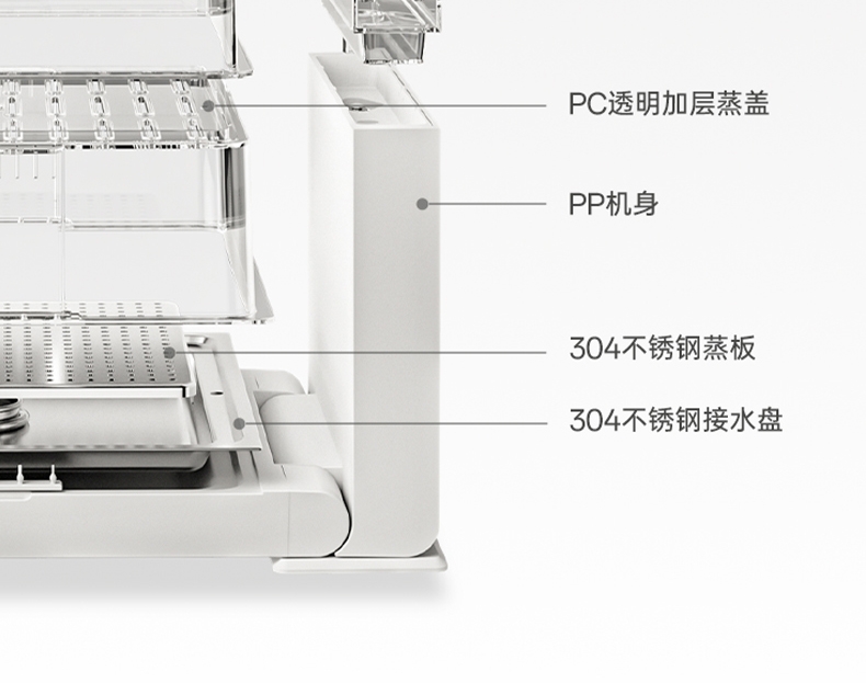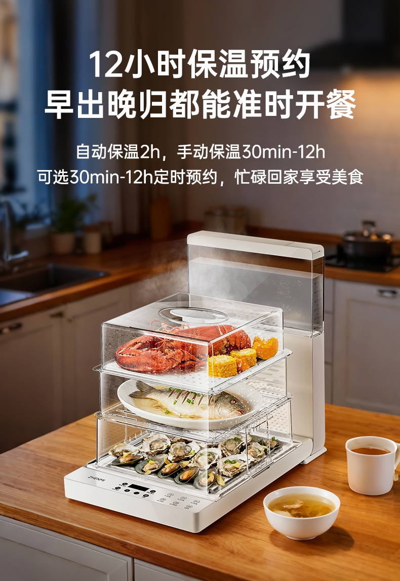 专利/奖项:外观设计专利+结构设计专利,荣获德国红;大容量:三层20L大容量;预约:24小时可调预约,304不锈钢蒸架