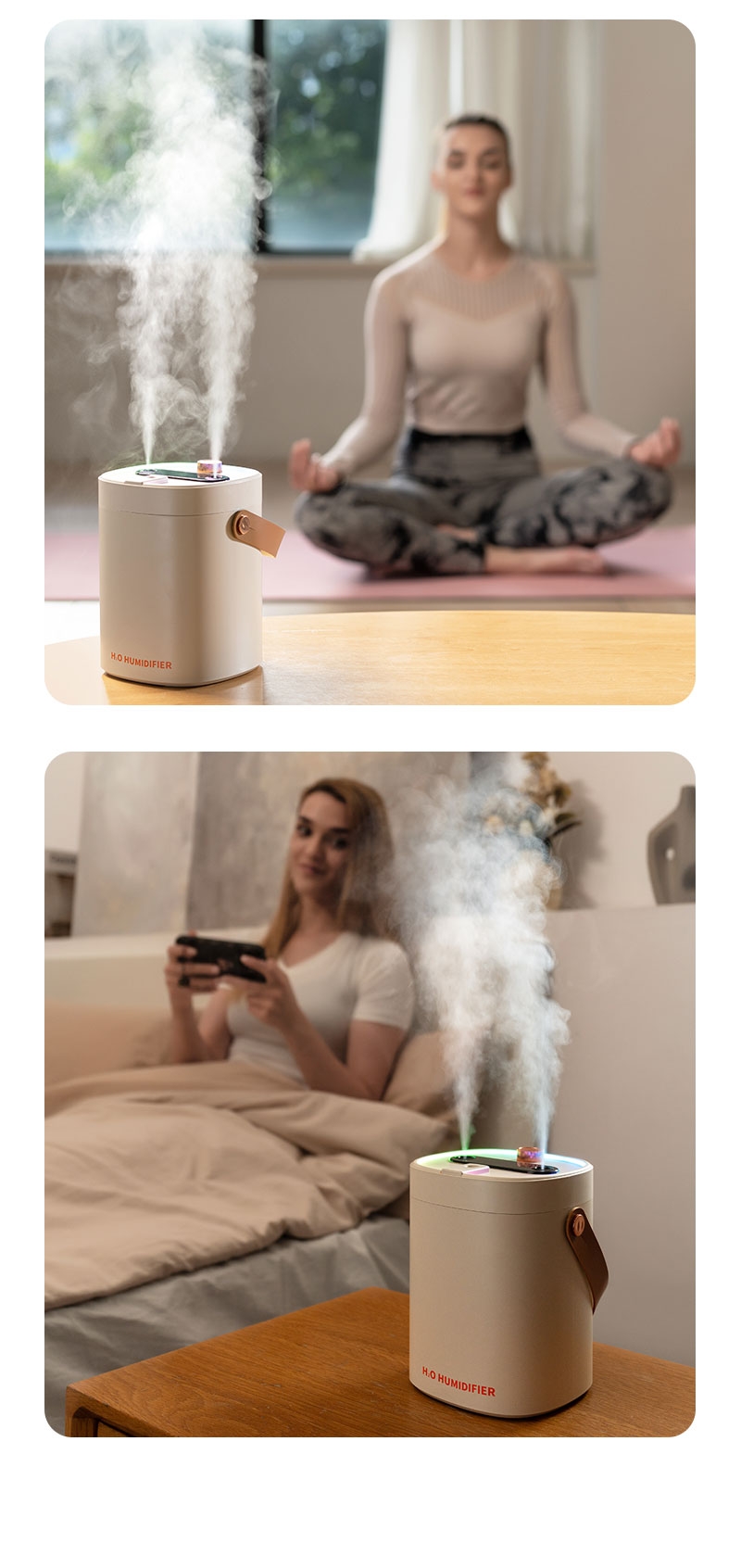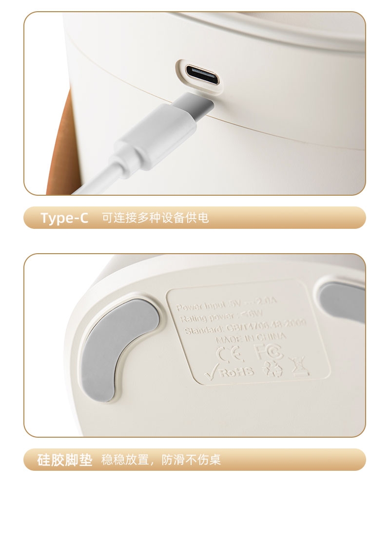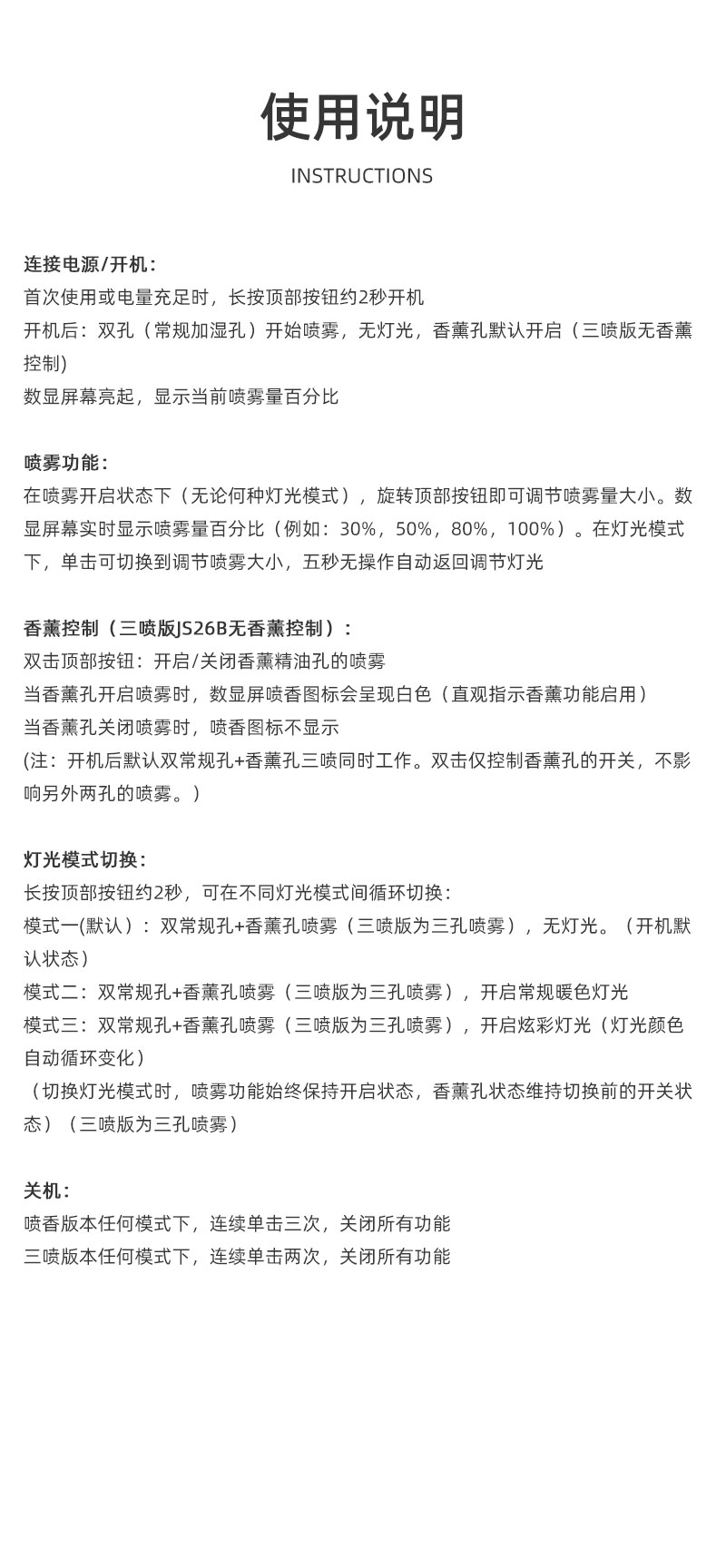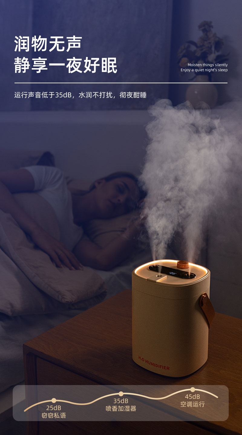 简约高档外观、三喷雾口;七彩小夜灯可调、2000ML大容量;喷香款有独立口可使用精油或者驱蚊液等