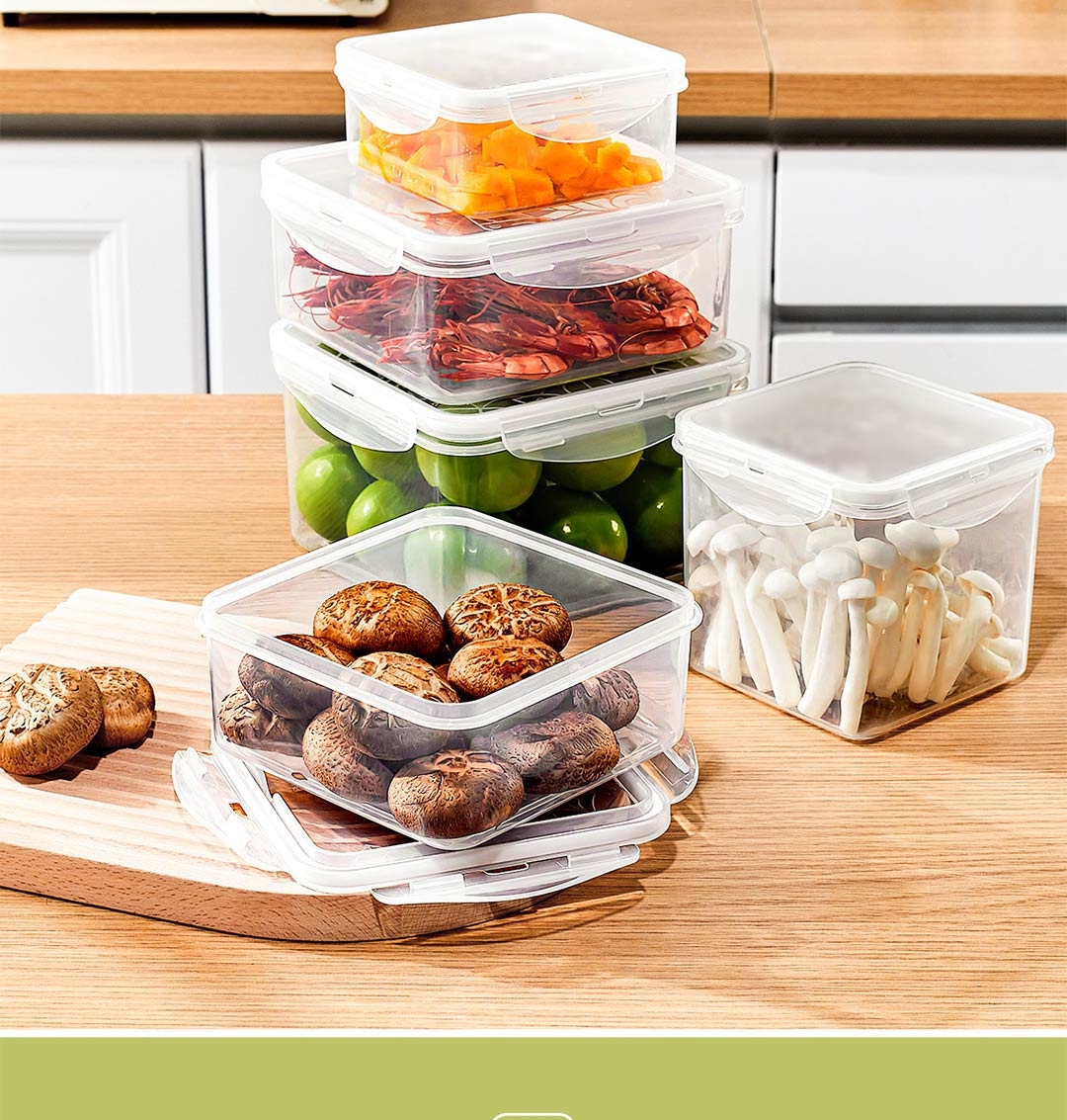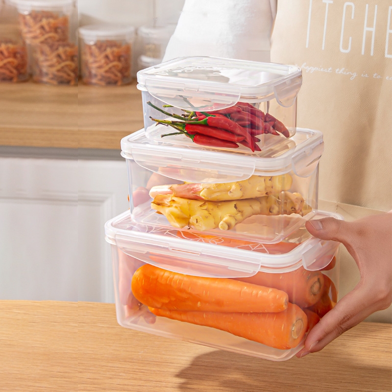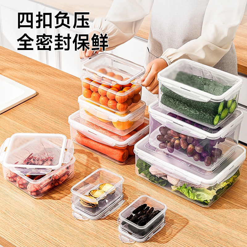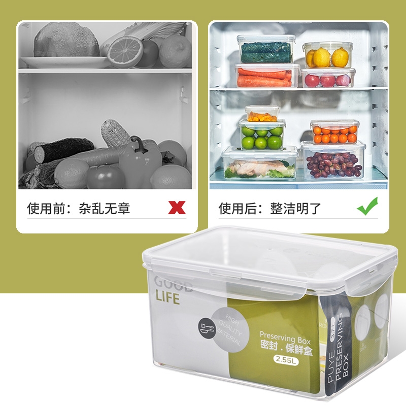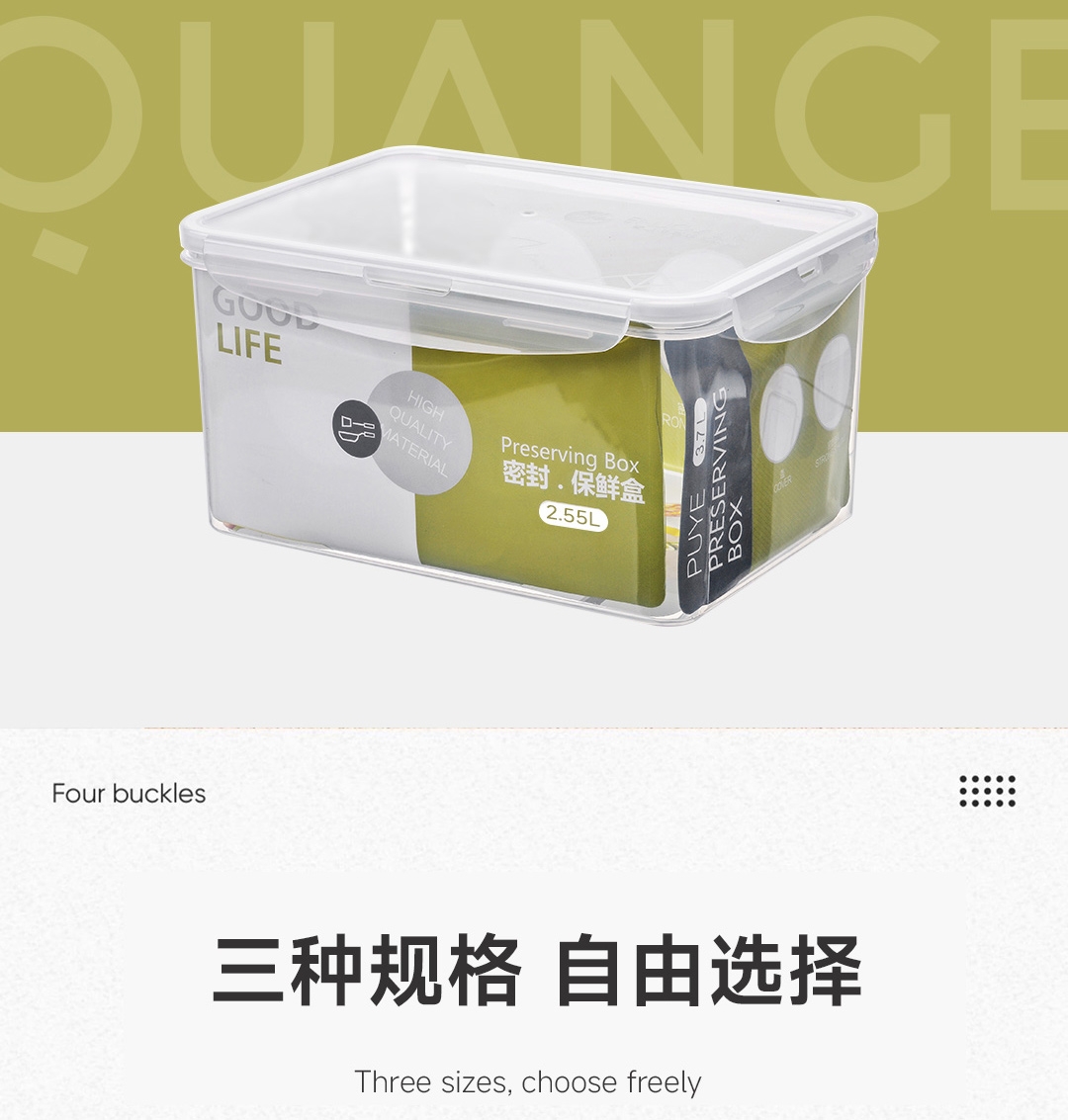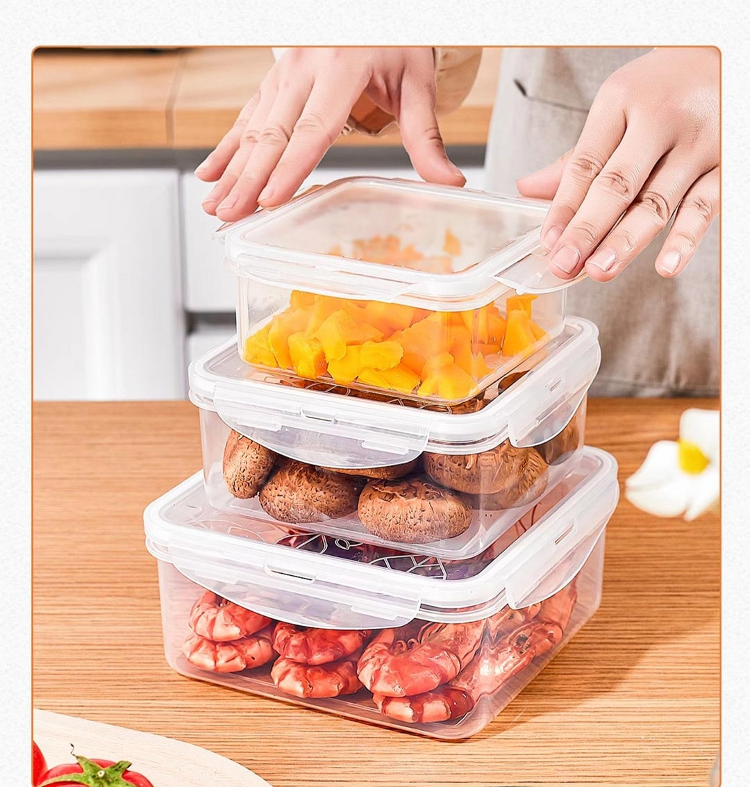 三个规格,分类收纳,锁住新鲜;四面锁扣,全密封不渗漏;耐冷耐热-20~120°C,适用冰箱、微波炉加热