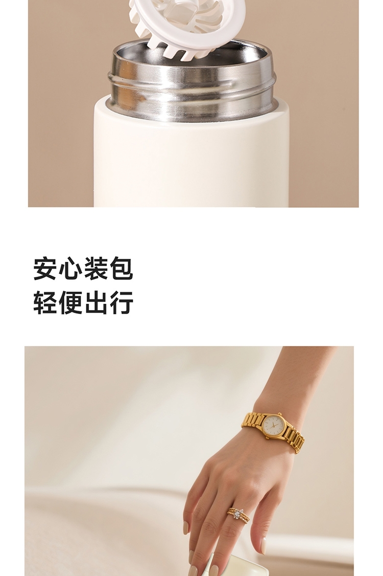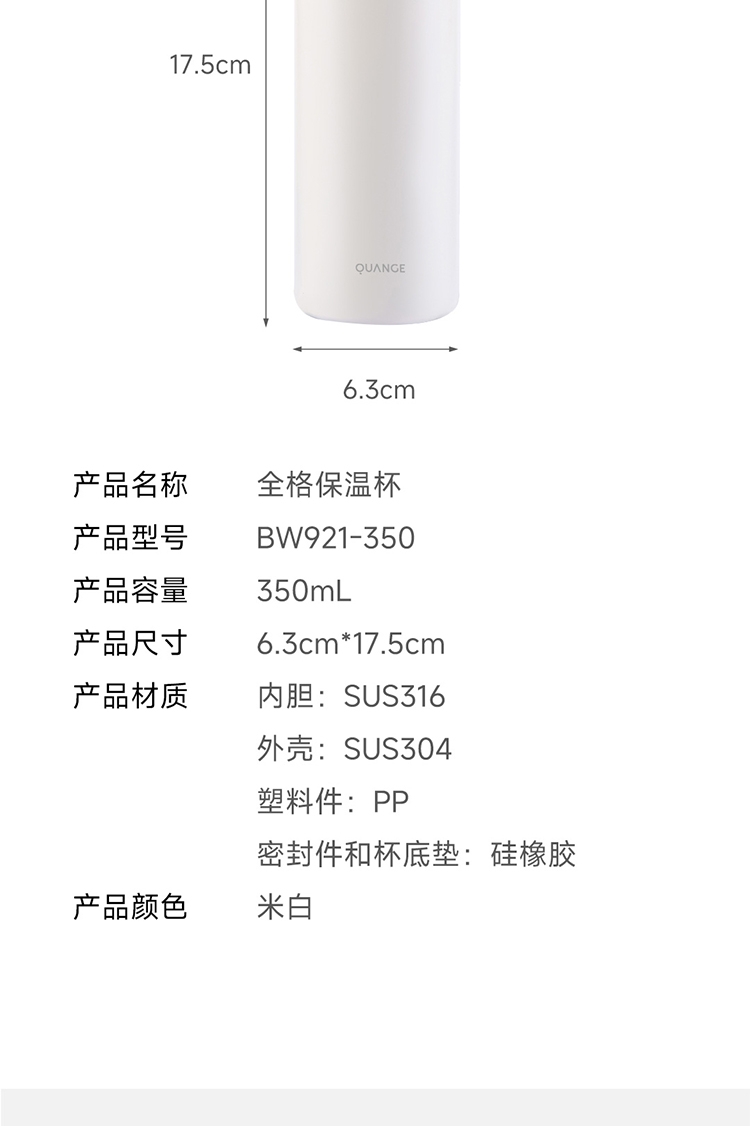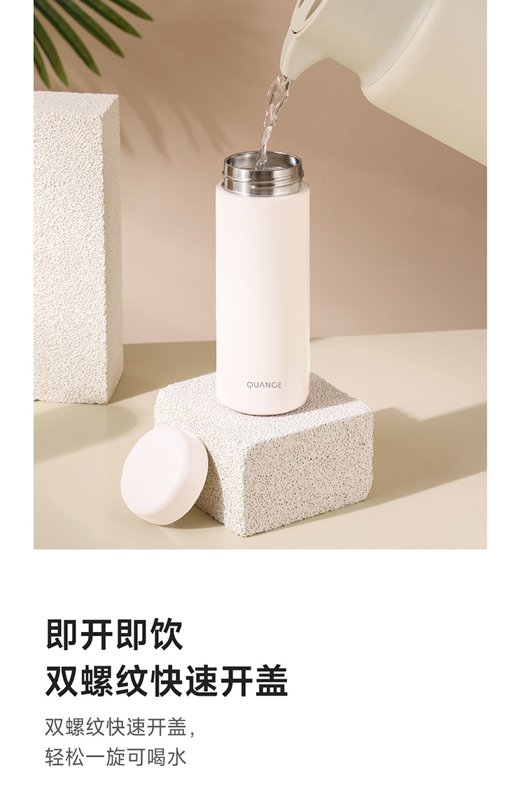 350ml容量,杯身小巧便携;316不锈钢内胆;双螺纹快速开盖设计,轻轻一旋可快速喝水