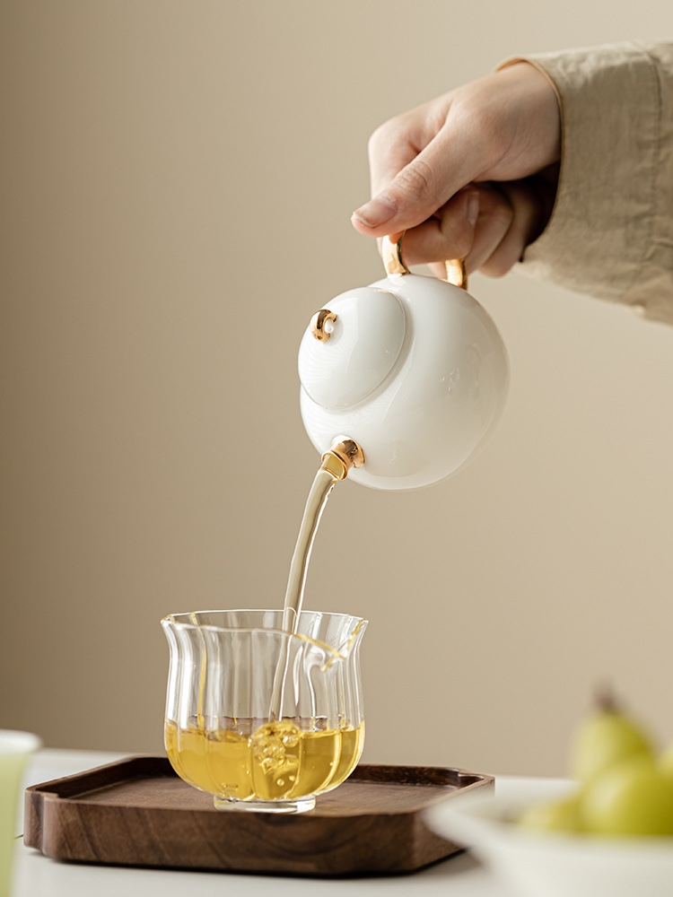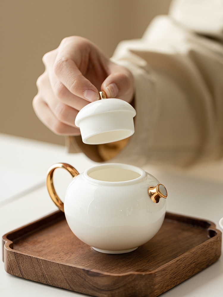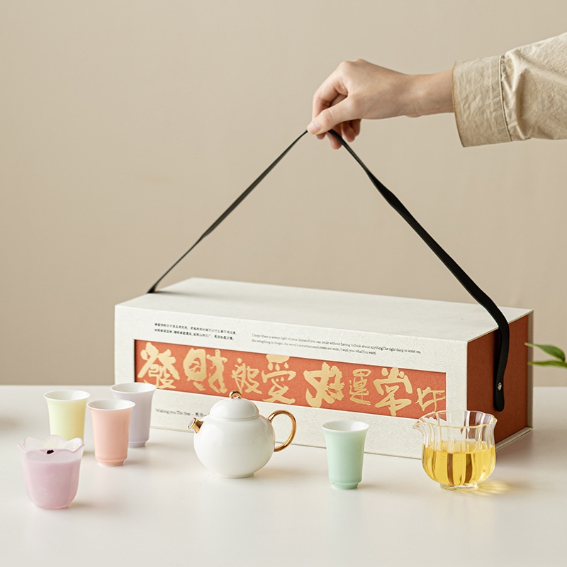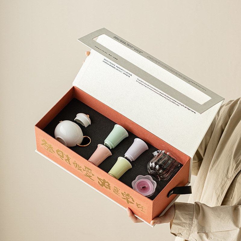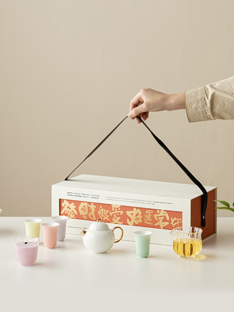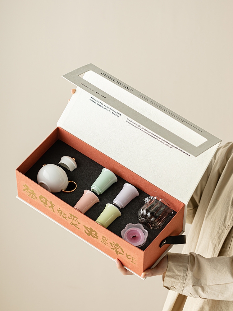 茶壶壶内自带滤球设计,分离茶水,一步出汤,澄净茶汤;整套茶器清新简约大方,搭配香薰,氛围感拉满;文创礼盒包装,国潮好礼