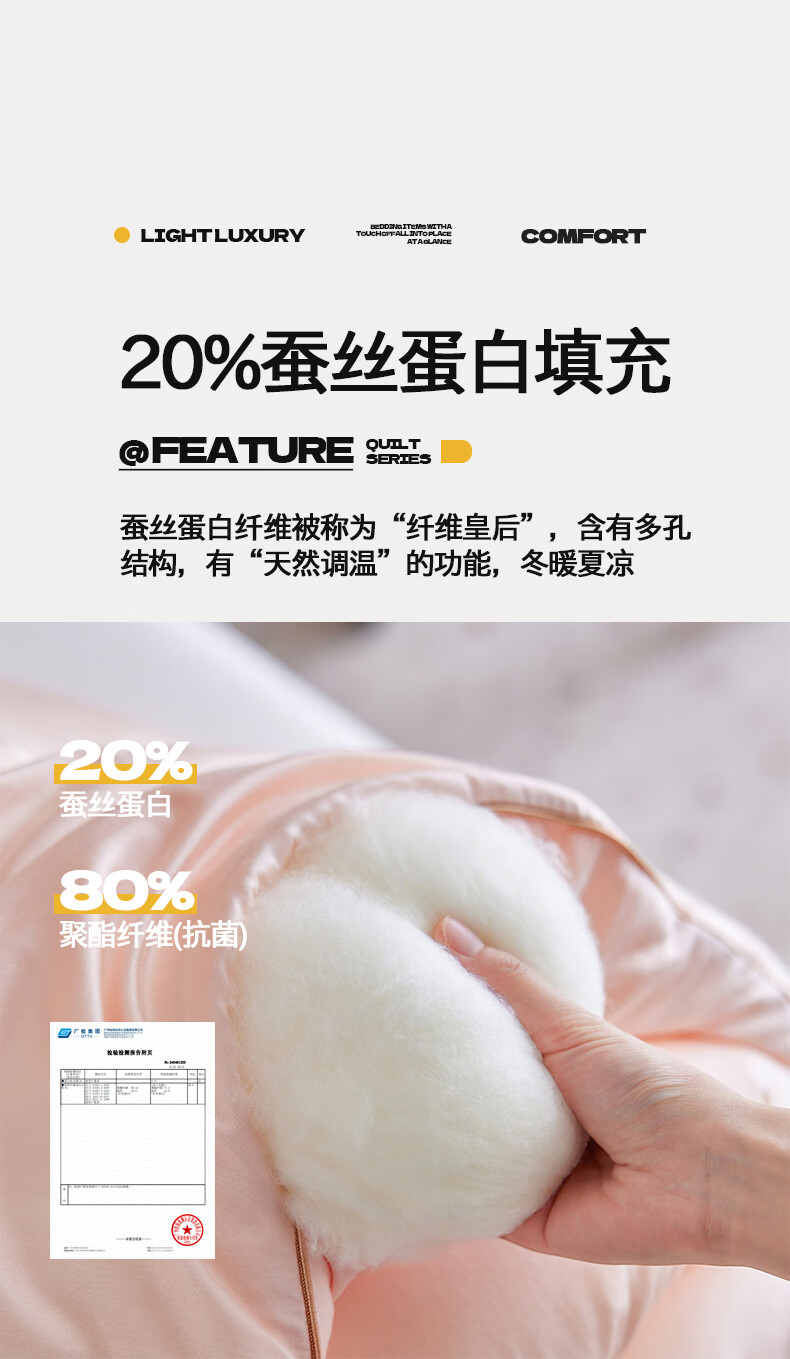 填充:20%蚕丝蛋白+80%聚酯纤维(抗菌)