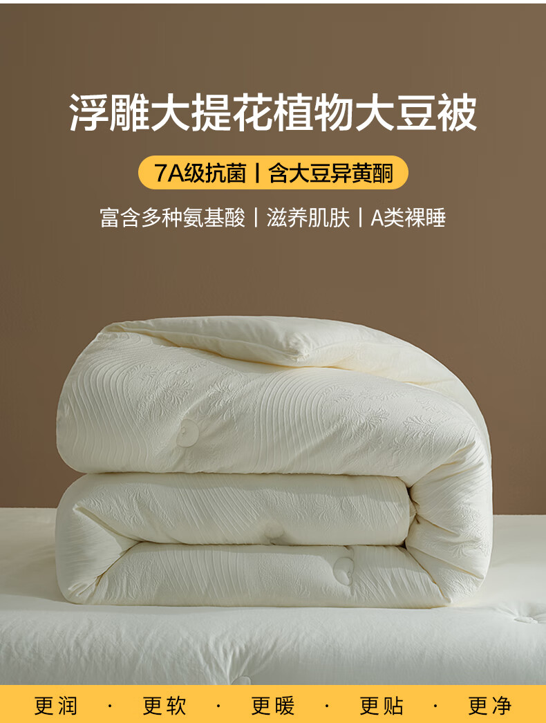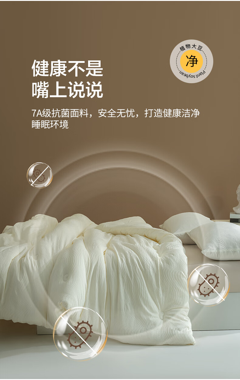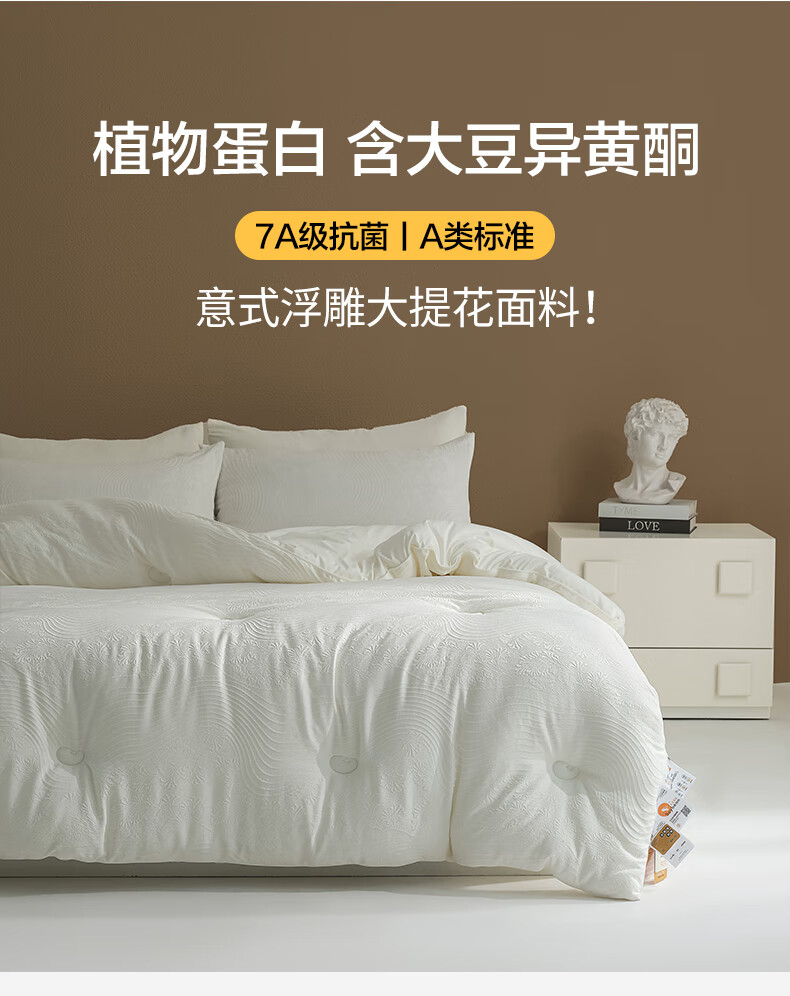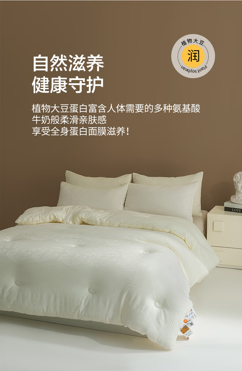 植物蛋白 含大豆异黄酮 7A级抗菌|A类标准;意式浮雕大提花面料! 自然滋养健康守护;润植物大豆蛋白富含人体需要的多种氨基酸