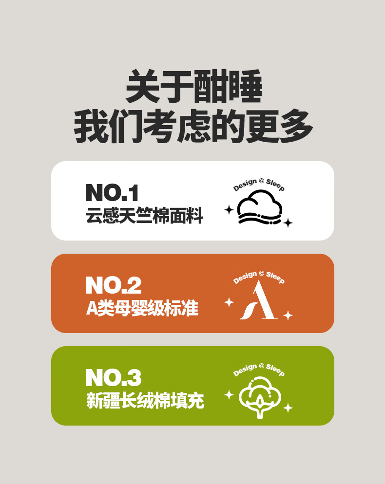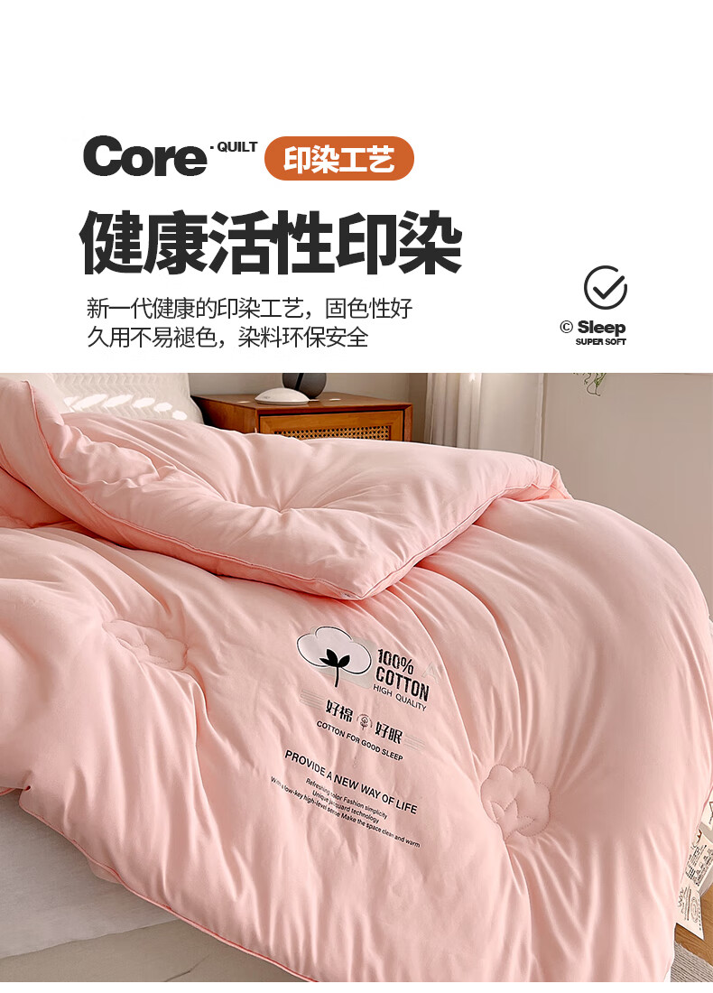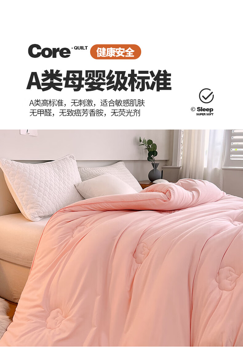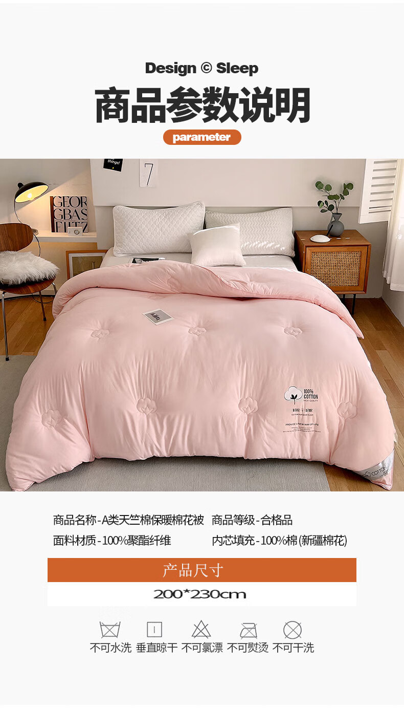 天竺棉面料,会呼吸的好面料,吸湿透气手感媲美内衣;摸起来细腻柔软,填充选用优质新疆棉花。;A类高标准,无刺激,适合敏感肌肤。