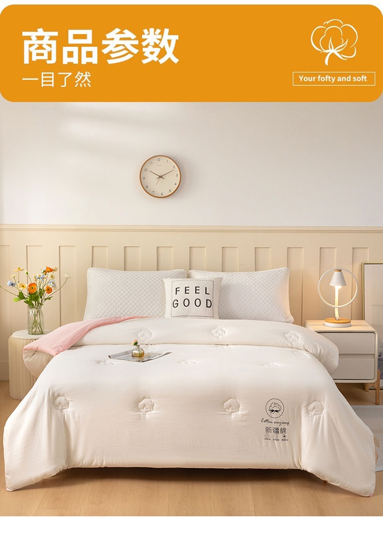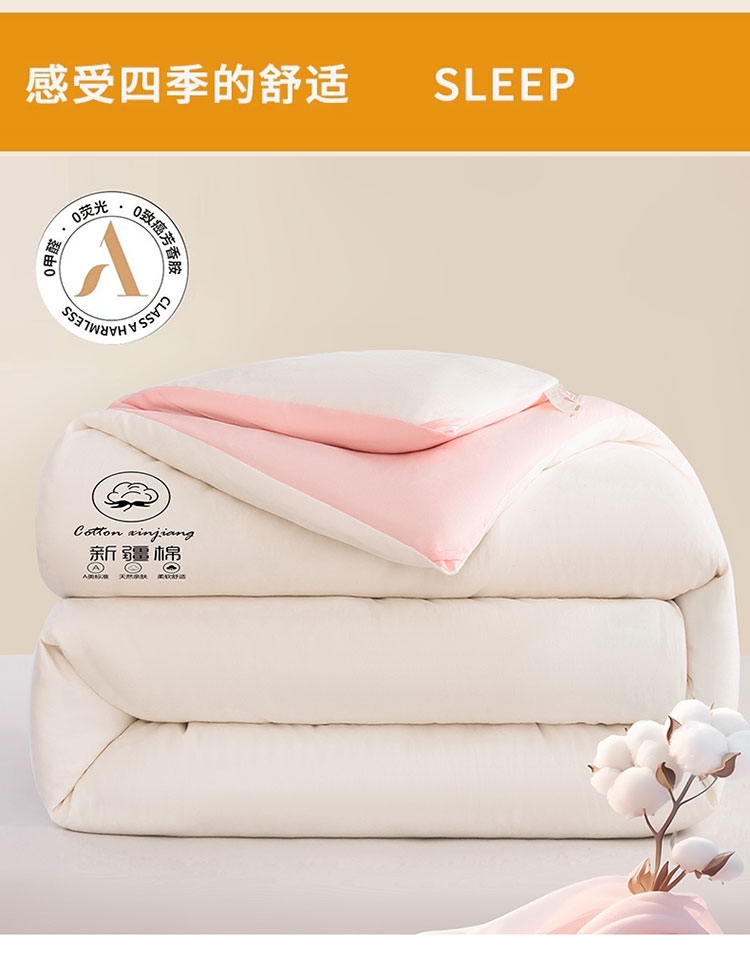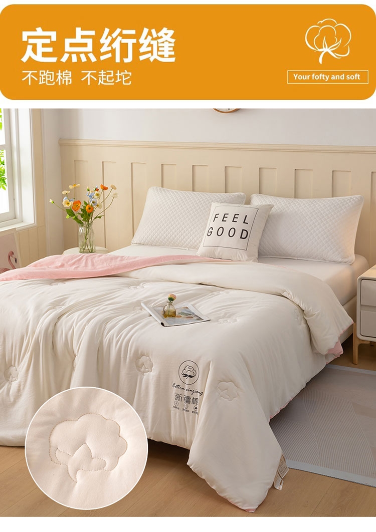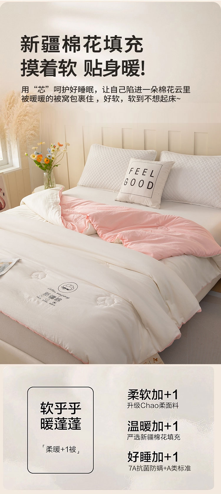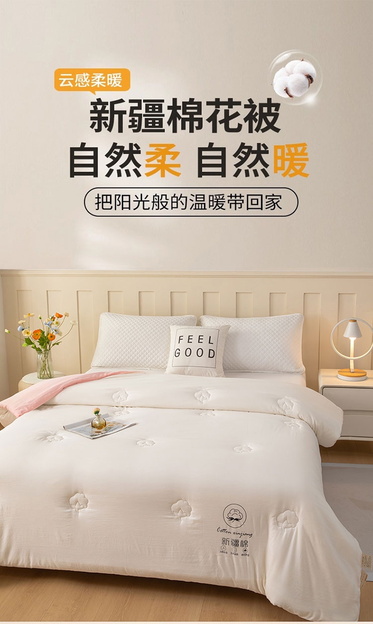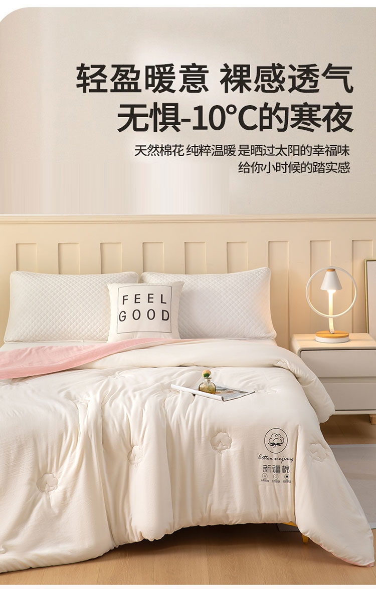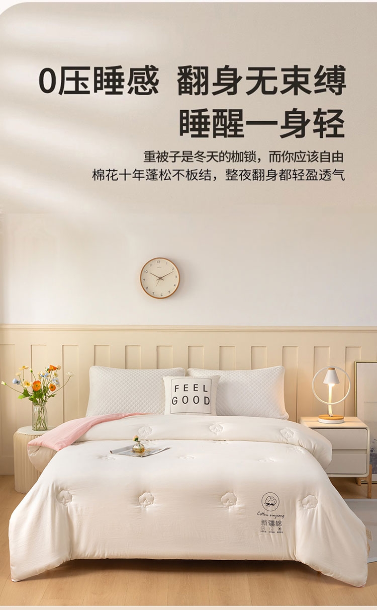 裹紧棉花的怀抱呼吸着棉花吸收的每一缕自然阳光的味道;新疆棉花填充摸着软 贴身暖!;重被子是冬天的枷锁,而你应该自由棉花十年蓬松不板结