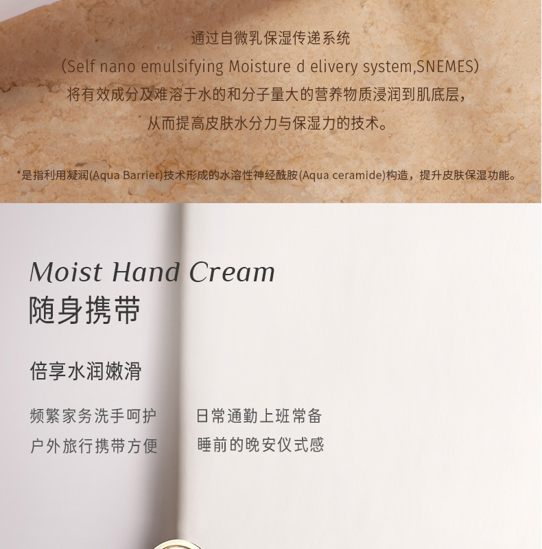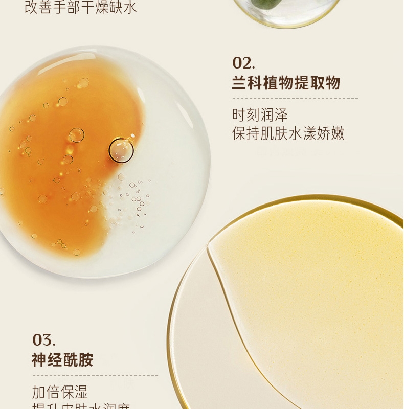 水润奶霜质地莹润保湿渗透清爽;多种植萃护肤减轻肌肤干燥紧绷感;特调香氛指尖淡雅留香