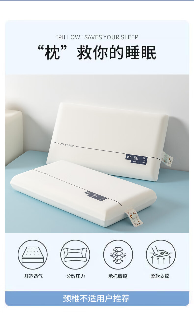 开启'0'压力舒适睡眠;柔软和支撑的完美平衡,;在躺下时给头部和颈部足够的包裹感又有足够的支撑