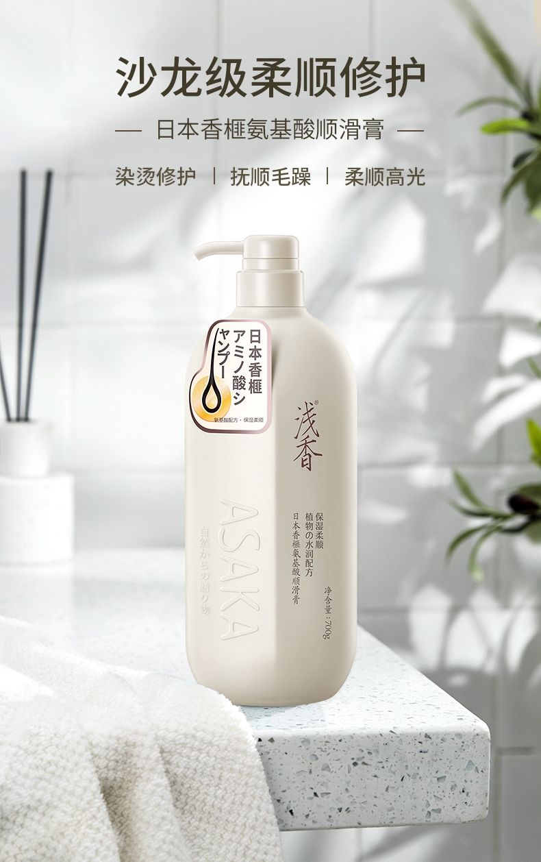 极致顺滑,告别毛躁;深层修护,强韧发丝;轻盈滋养,拒绝扁塌