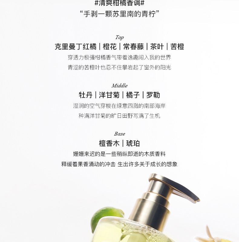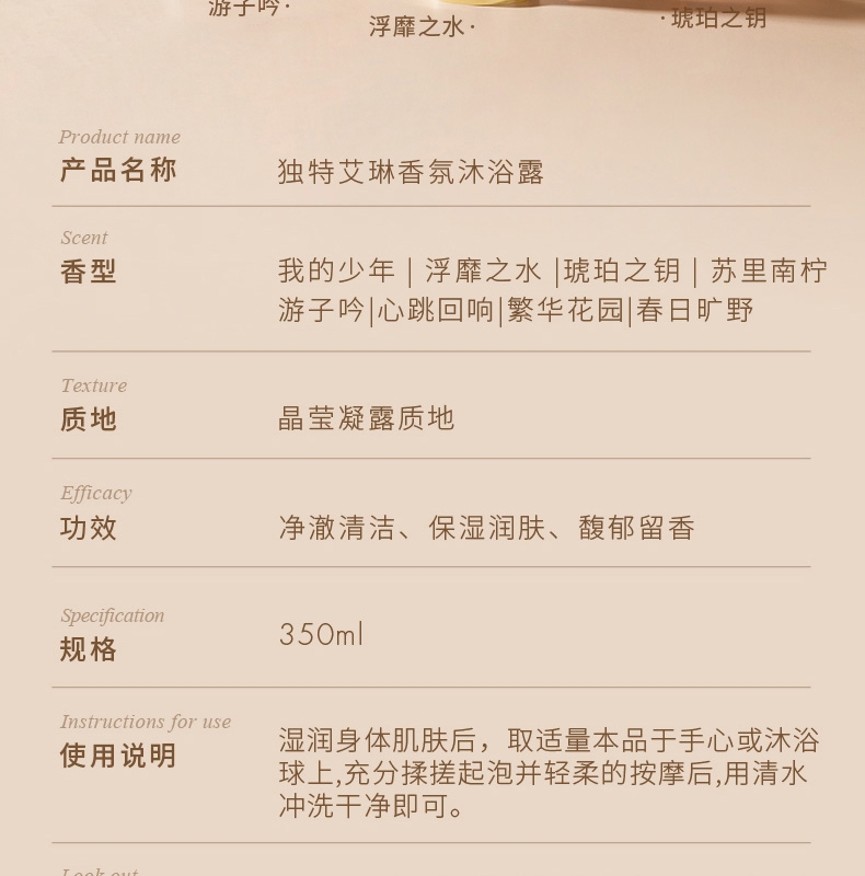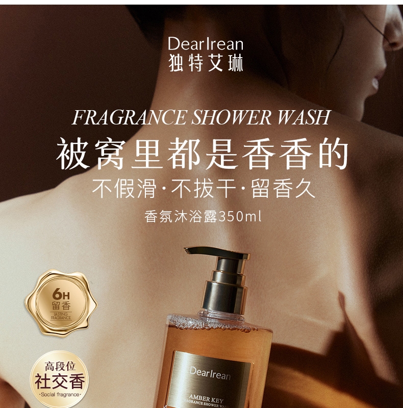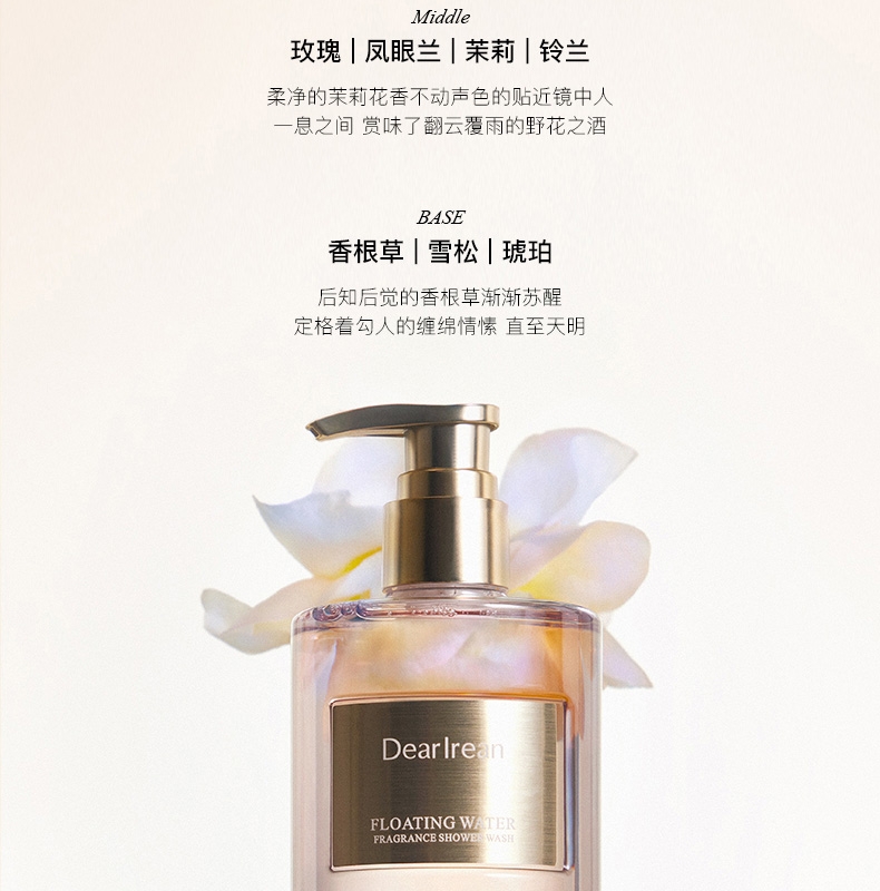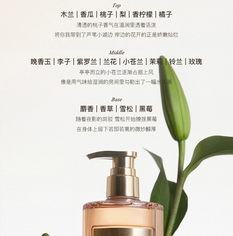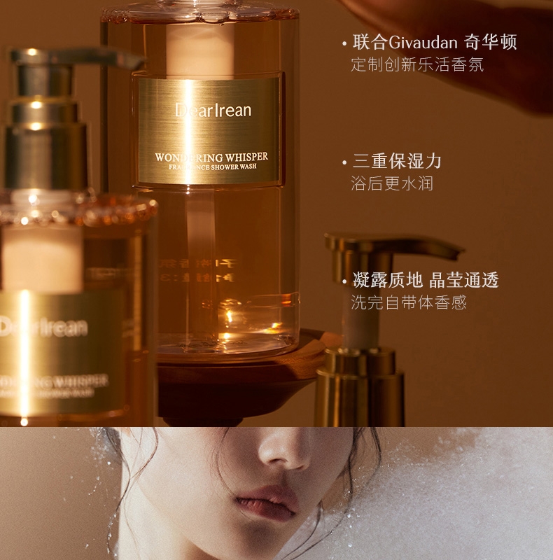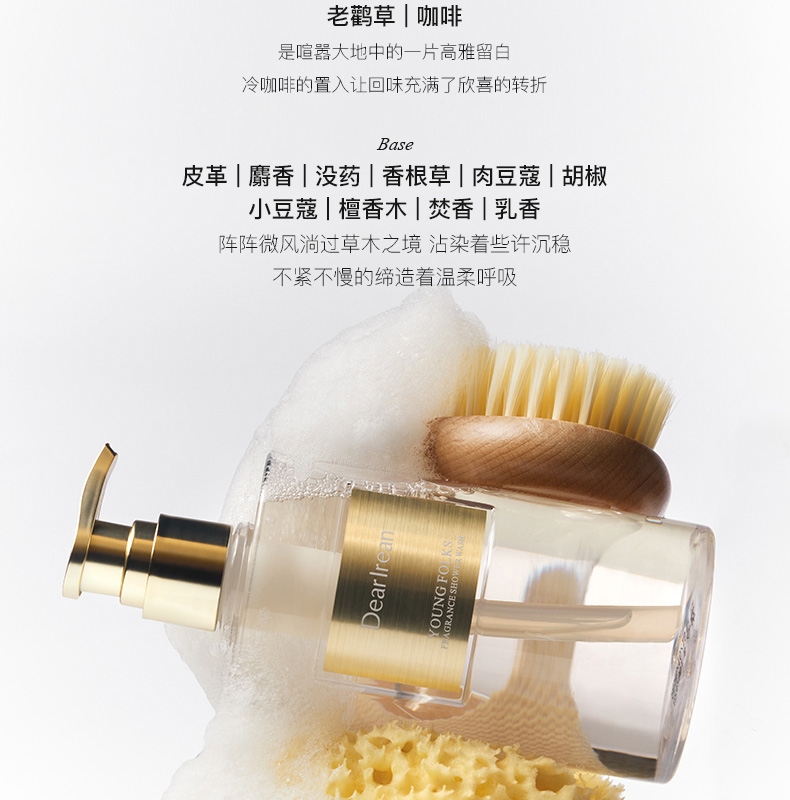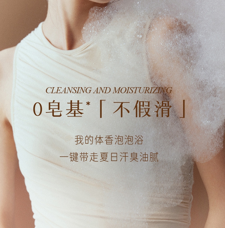 特调香氛香水级沐浴露自带高级感伪体香;洁面级温和洗感清洁力于肤感并存;透明凝露质地加上双重氨基酸表活泡沫绵密好冲洗