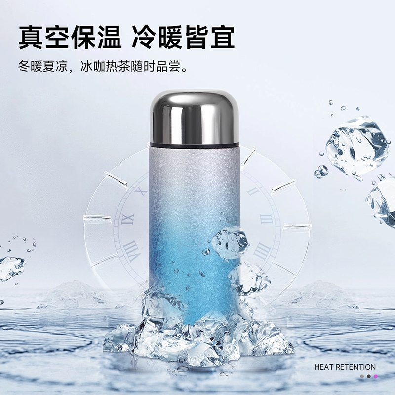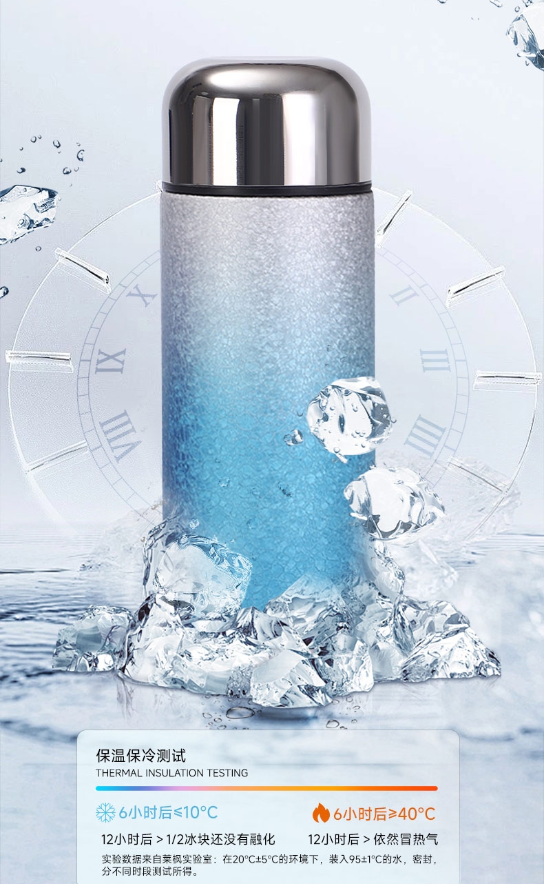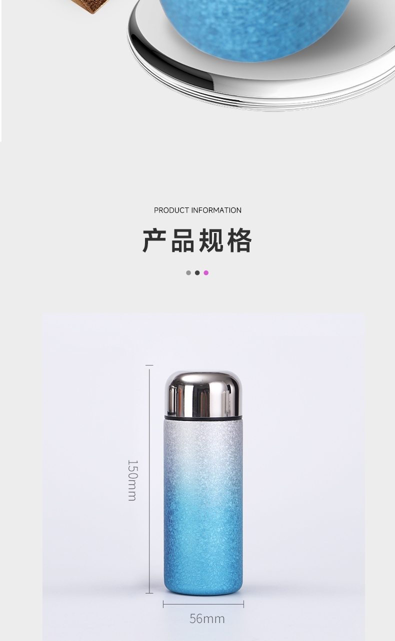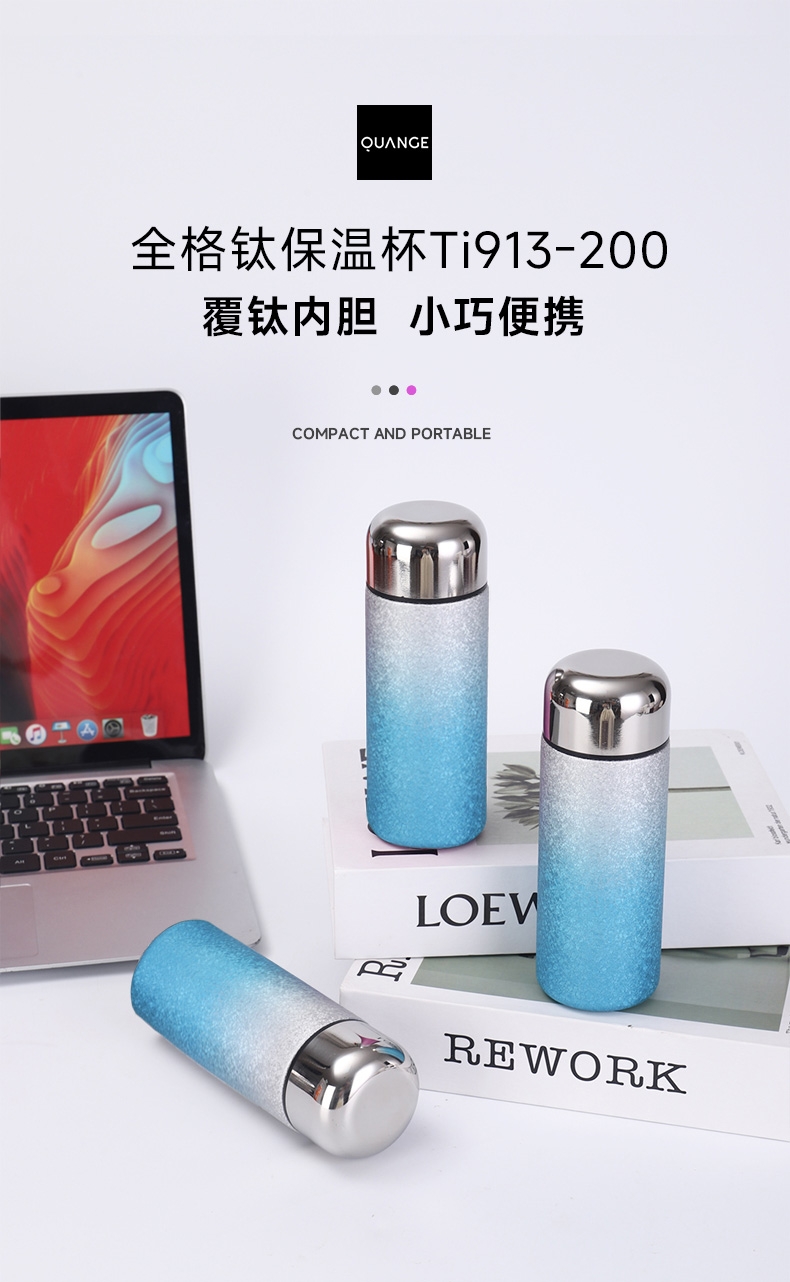 200ml迷你杯,轻盈小巧,携带方便;镀钛内胆,长效抑菌保鲜;杯身水晶纹晶花漆工艺