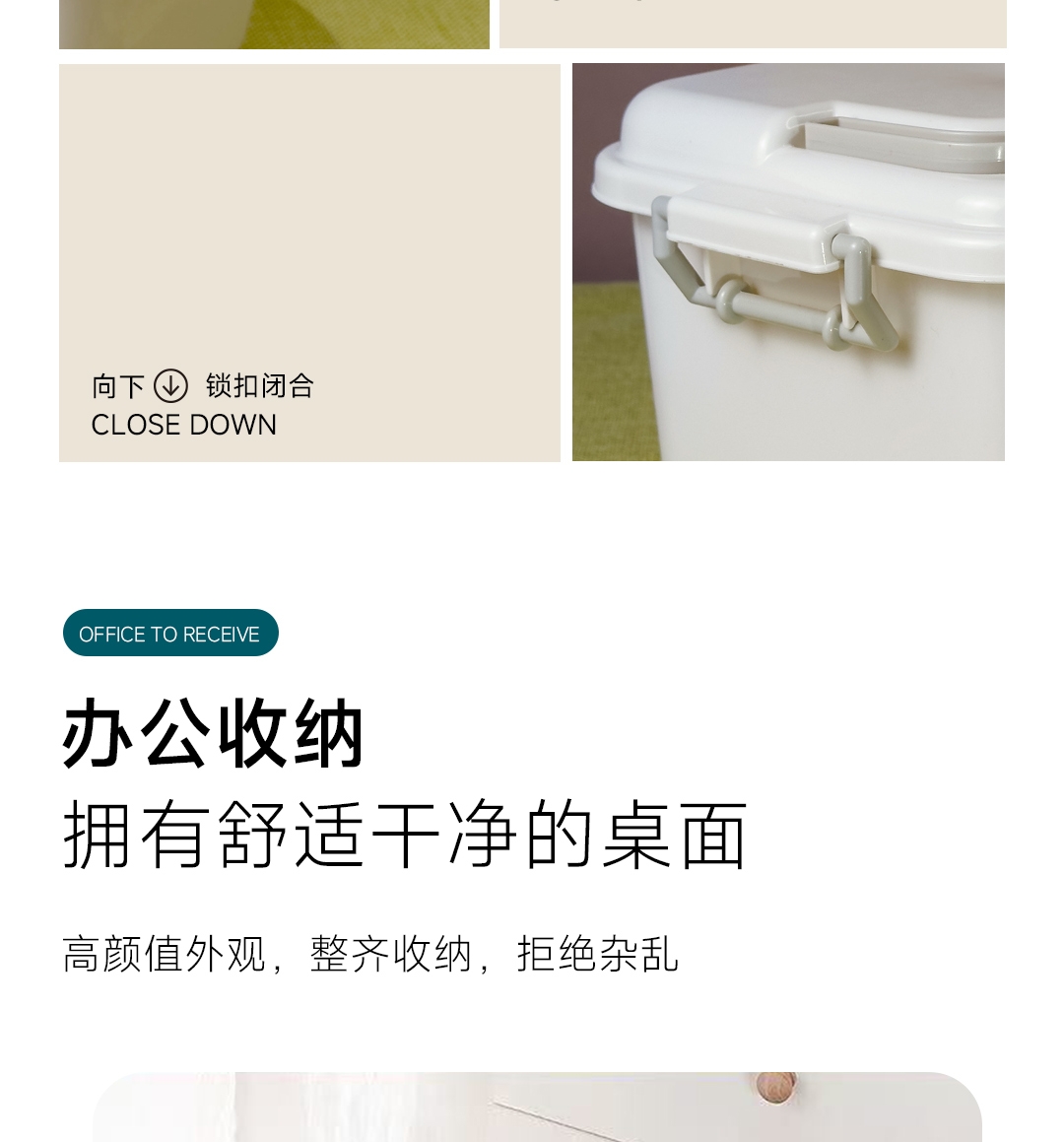 分类收纳,告别凌乱;双边锁扣设计,带盖防尘;厚实提手,小巧便携