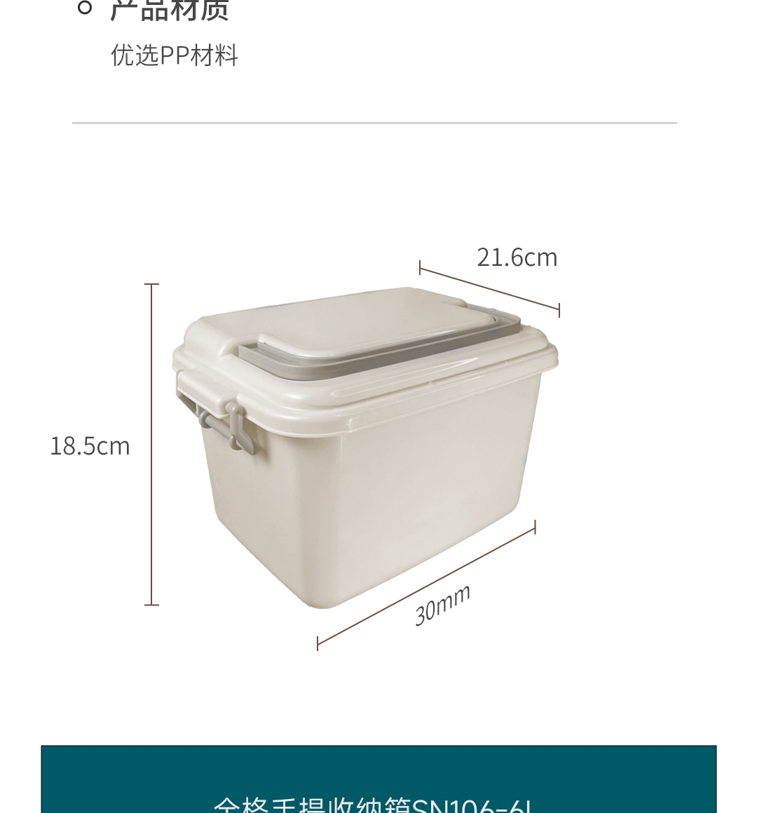 全格 双边锁扣带盖防尘手提收纳箱SN106-6L