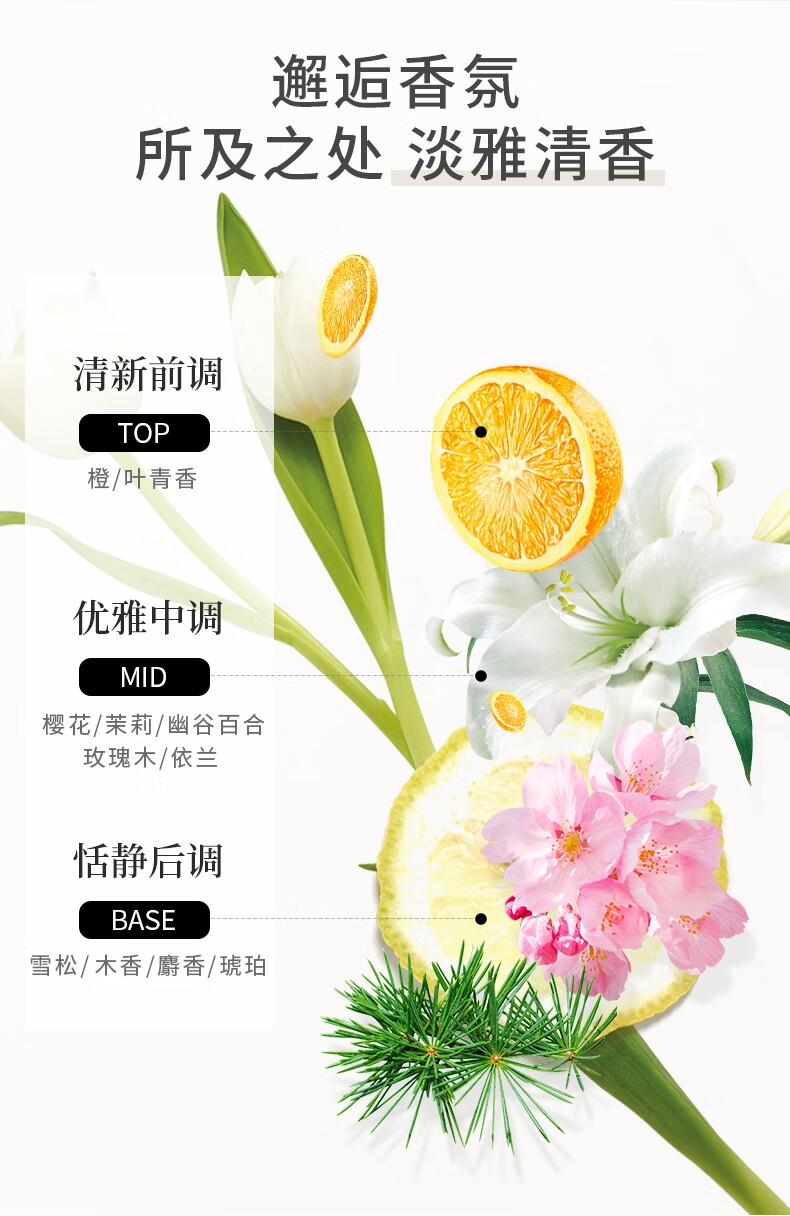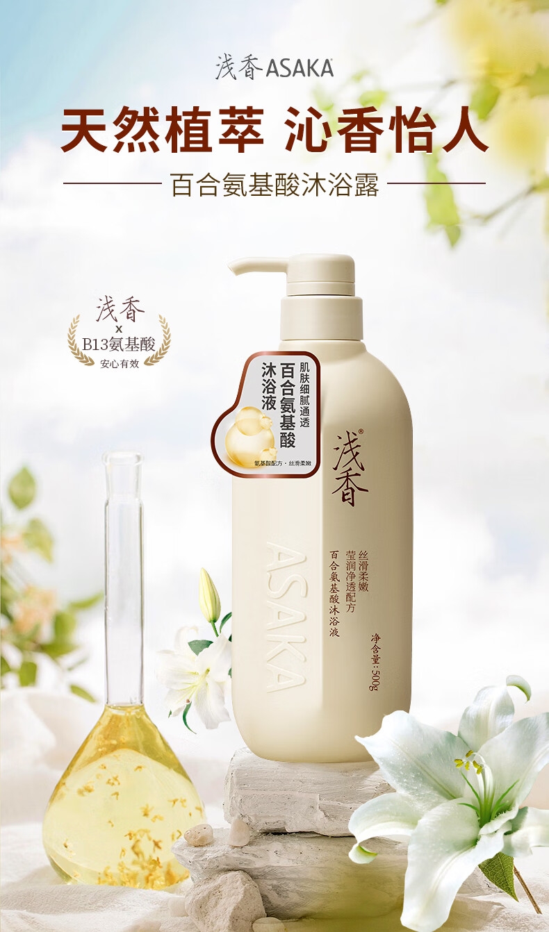 氨基酸温和洁净,亲肤零负担;清雅百合香氛,打造高级嗅觉体验;个人专属的温和沐浴仪式