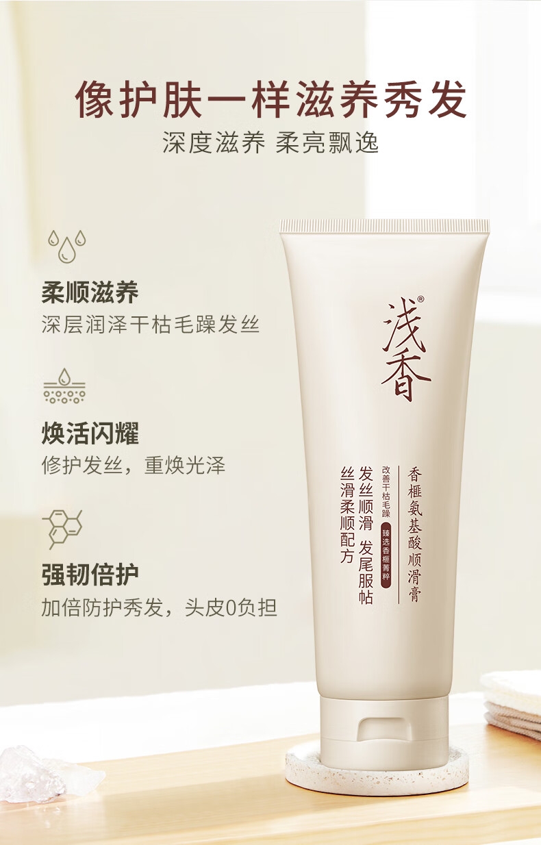 珍稀香榧精华,深度滋养;氨基酸修护技术,温和无负担;轻盈修护,拒绝扁塌
