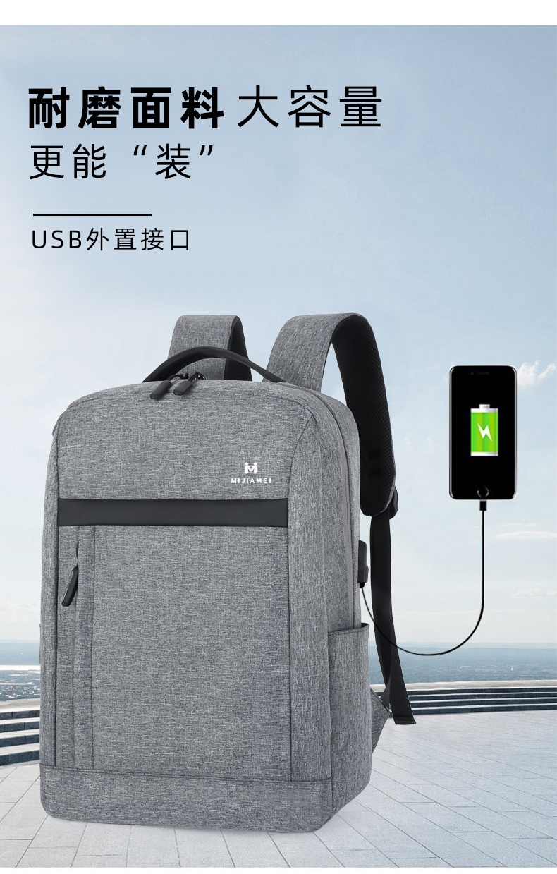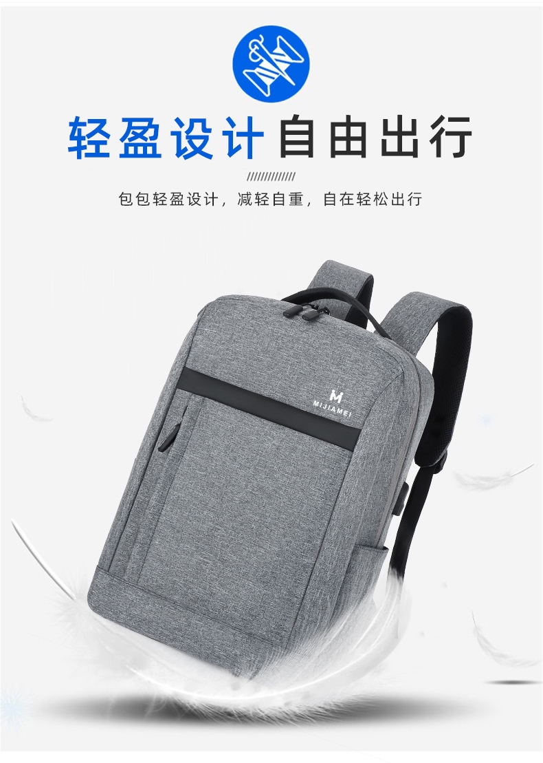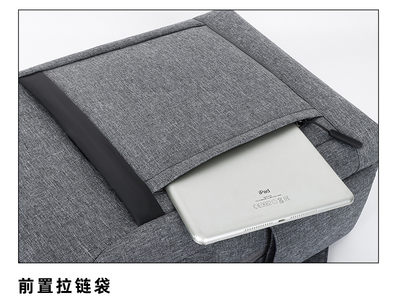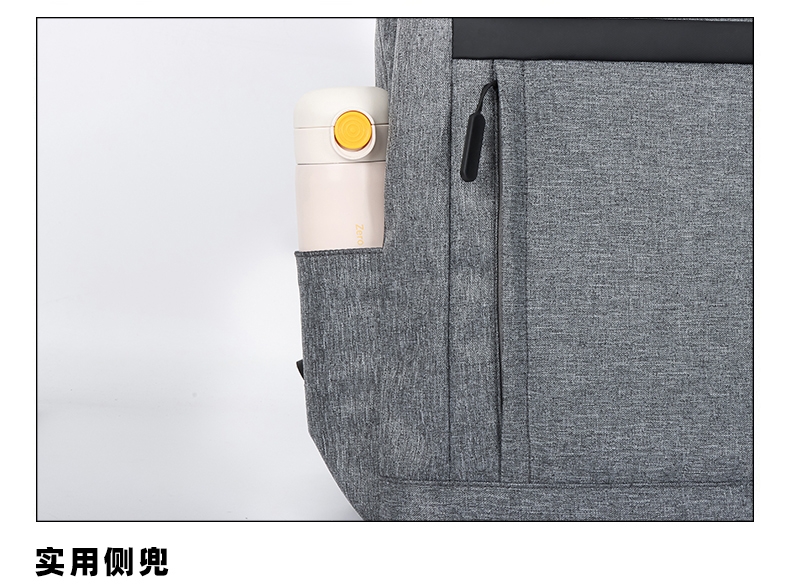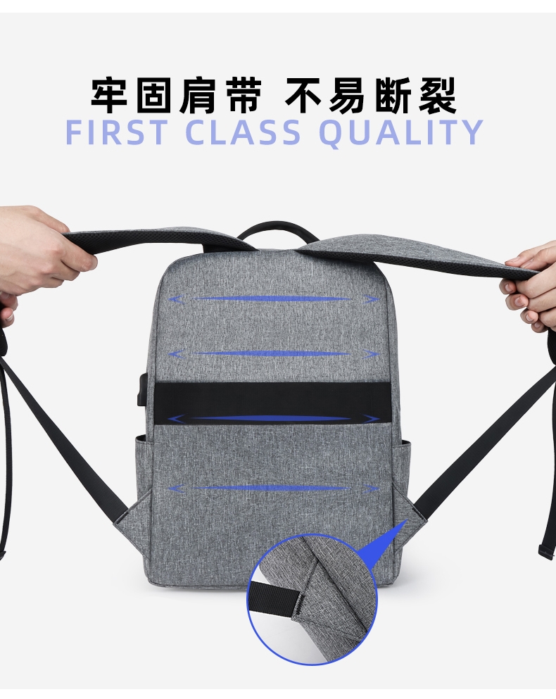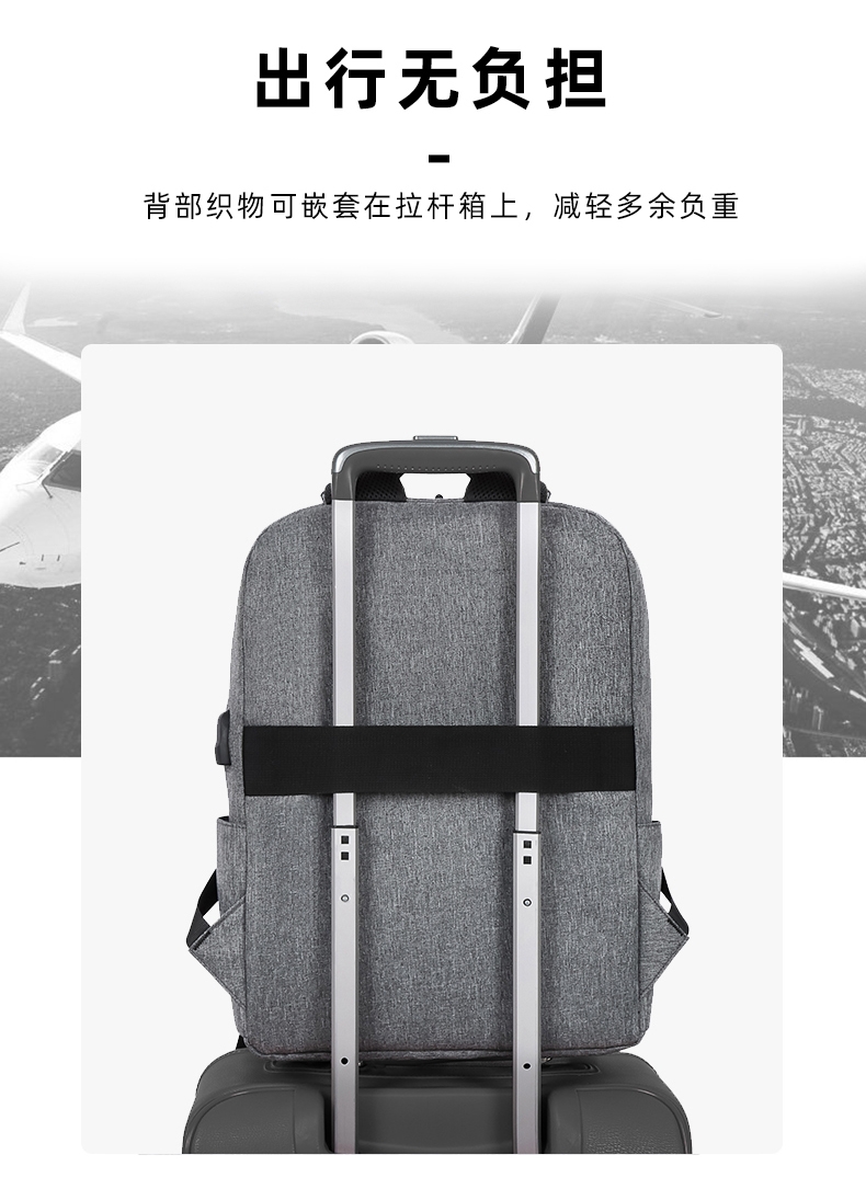 采用抗撕裂面料涤纶高弹牛津布,防泼耐磨材质;侧边配备水杯位。时尚新潮USB充电接口设计充电方便;拉杆箱固定带,轻松出行,减压利器。