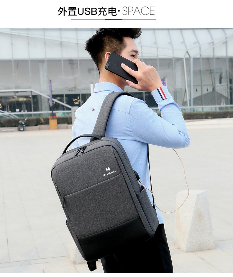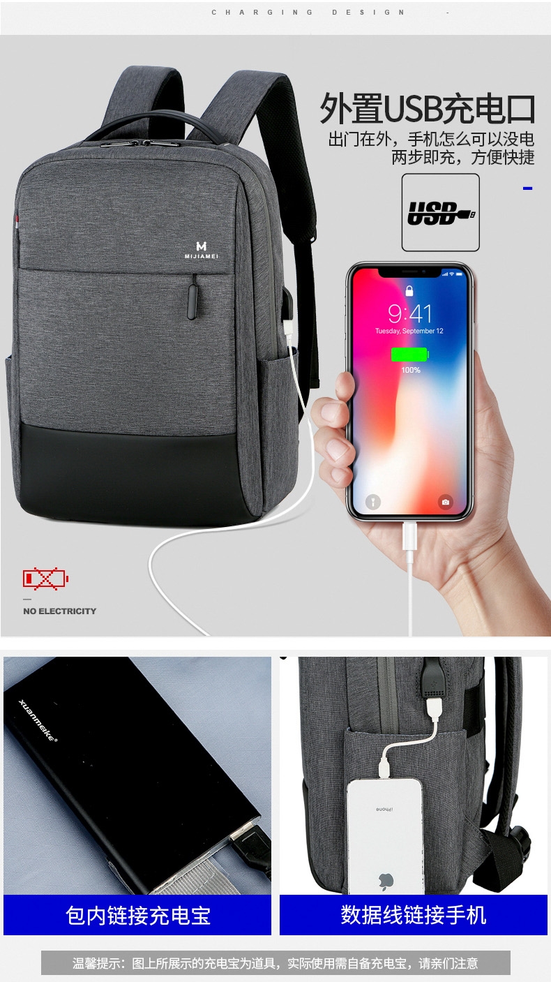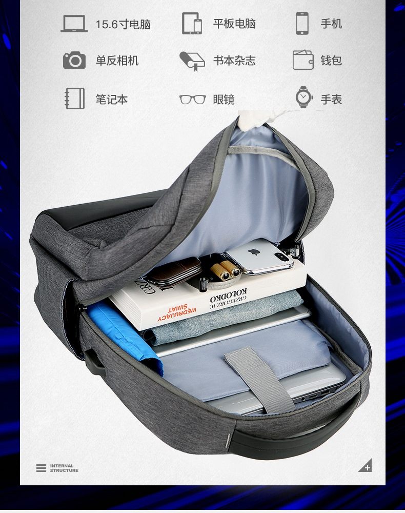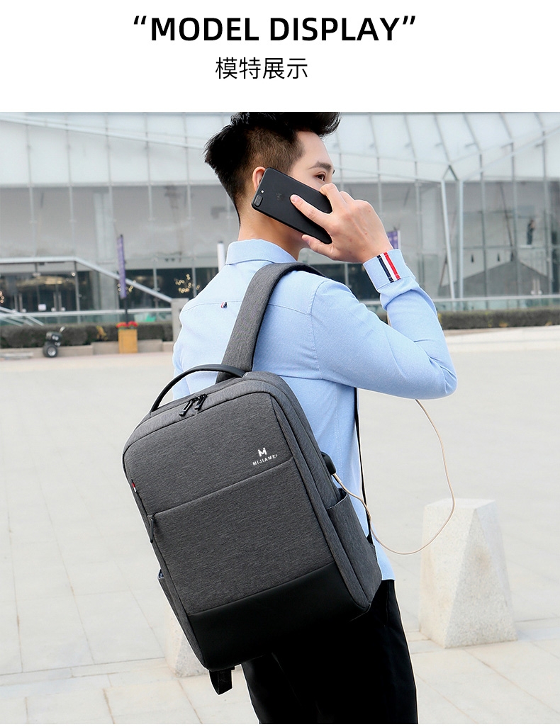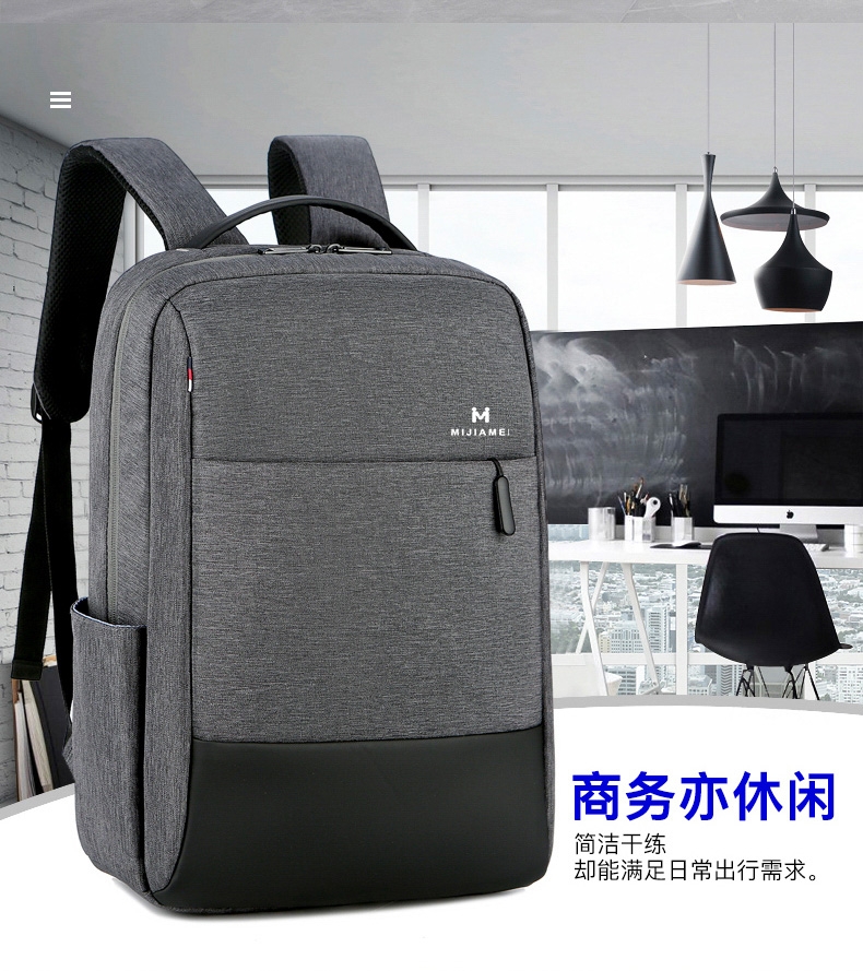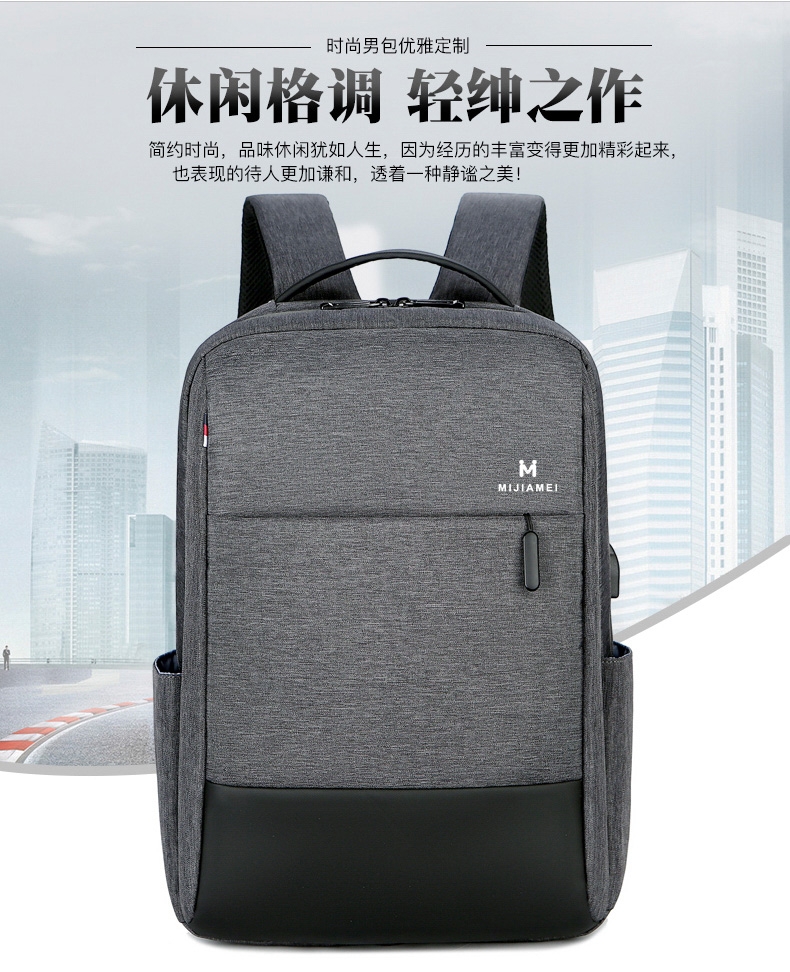 采用抗撕裂面料涤纶高弹牛津布,防泼耐磨材质;侧边配备水杯位雨伞位。时尚新潮USB充电接口;拉杆箱固定带,轻松出行,减压利器