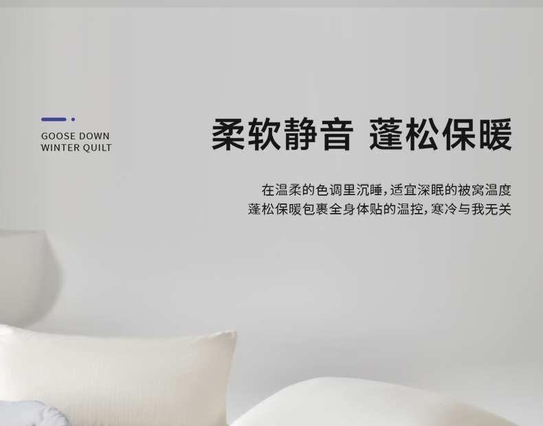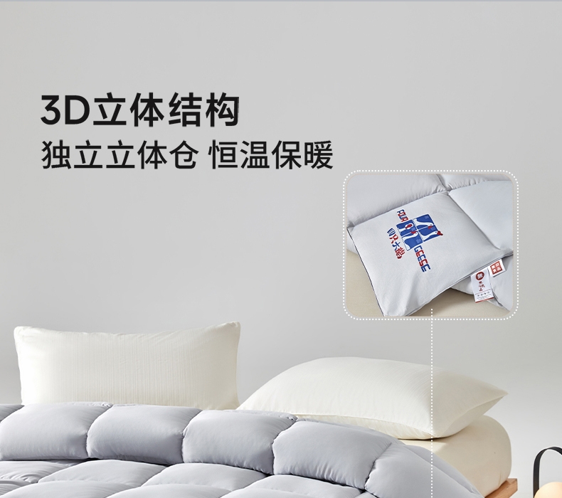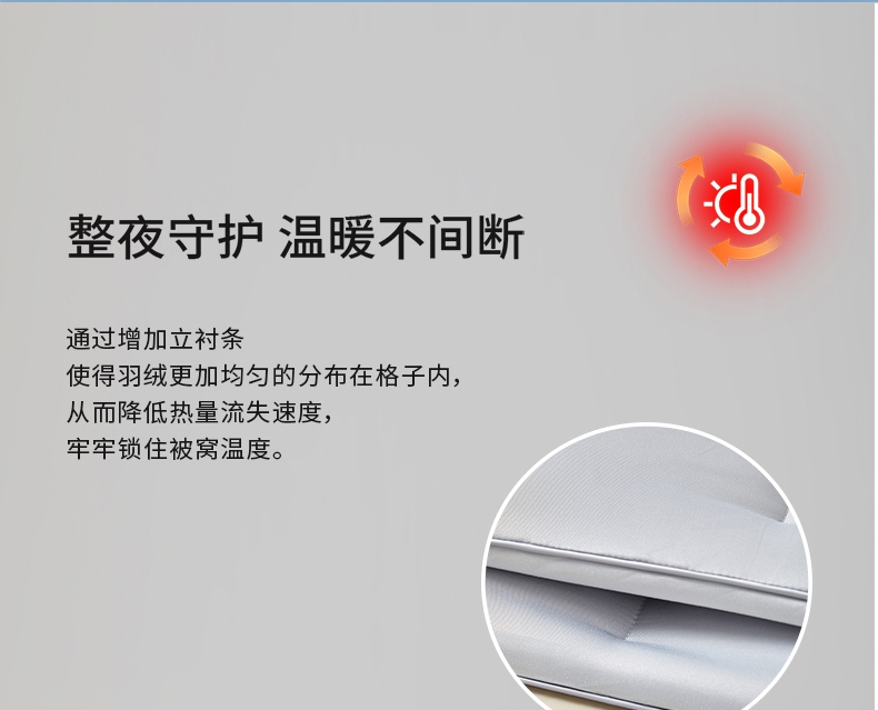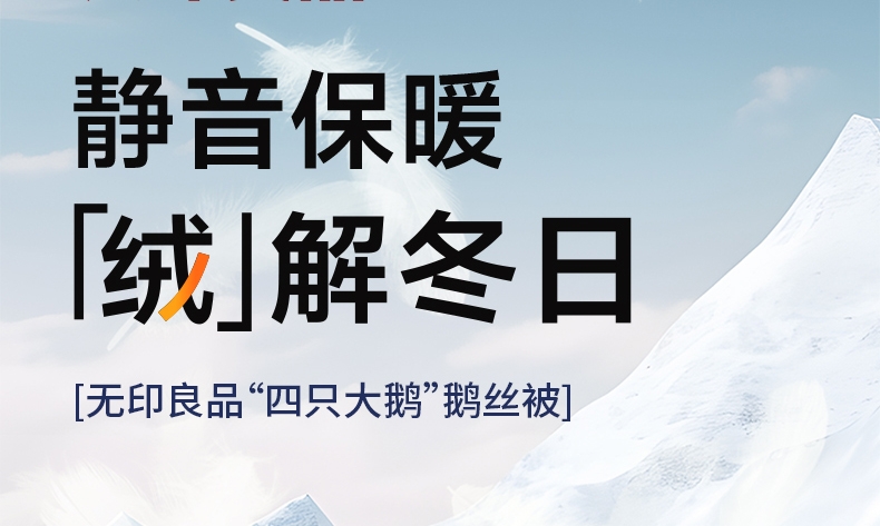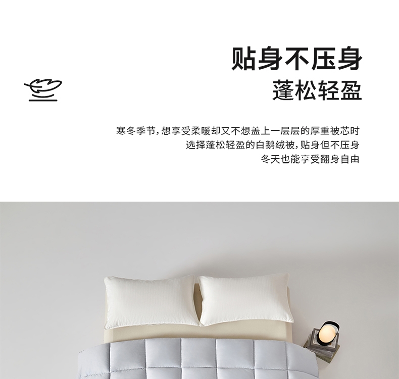 “無印”品牌,年轻人最喜欢品牌;蓬松仿鹅丝绒填充,科学配比,聚暖保温,自然健康; 高品质、高材质、高标准,一款对生活高度负责的产