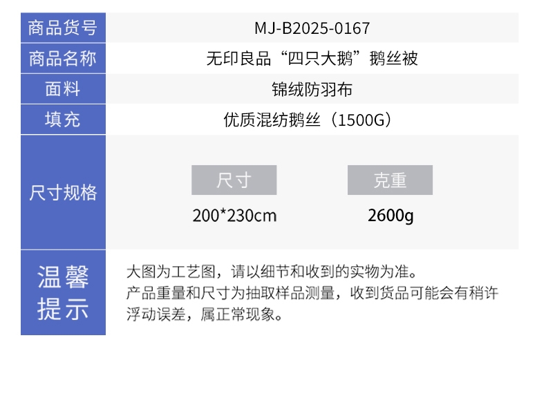 無印良品 四只大鹅鹅丝被MJ-B2025-0167
