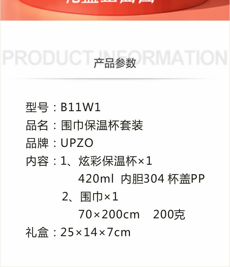 配置清单:保温杯*1、围巾*1、礼盒*1