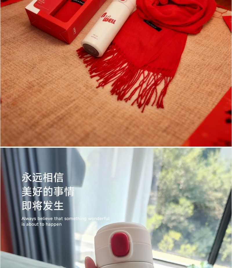 保温杯主题设计 顺遂;红色围巾200克每条 中国红;礼盒包装 送礼佳品