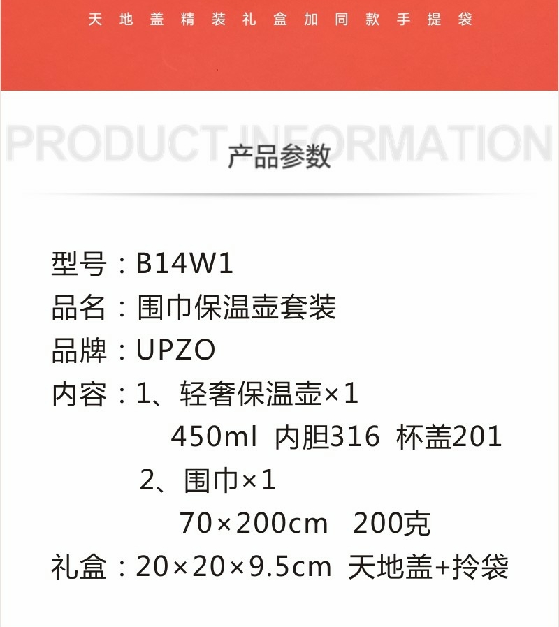 配置清单:保温壶*1、围巾*1、礼盒*1