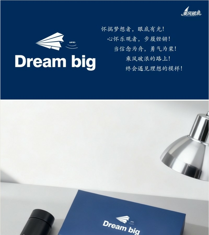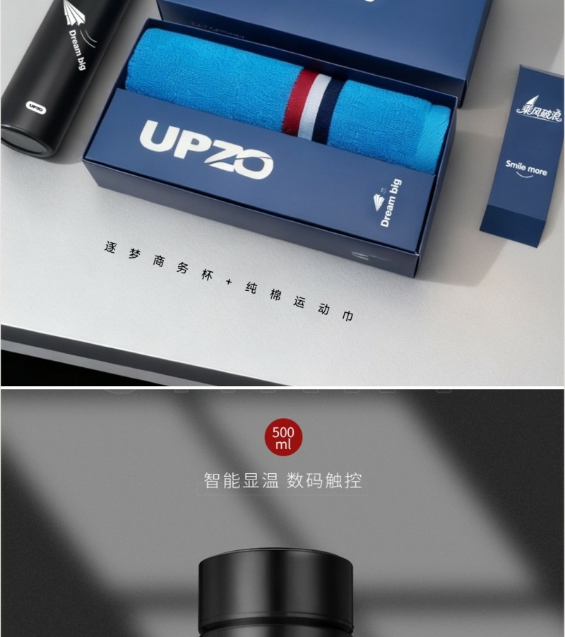 商务保温杯带温度显示加逐梦主题融入;加厚纯棉运动巾 英伦风格 严选好物;天地盖礼盒加手提袋设计