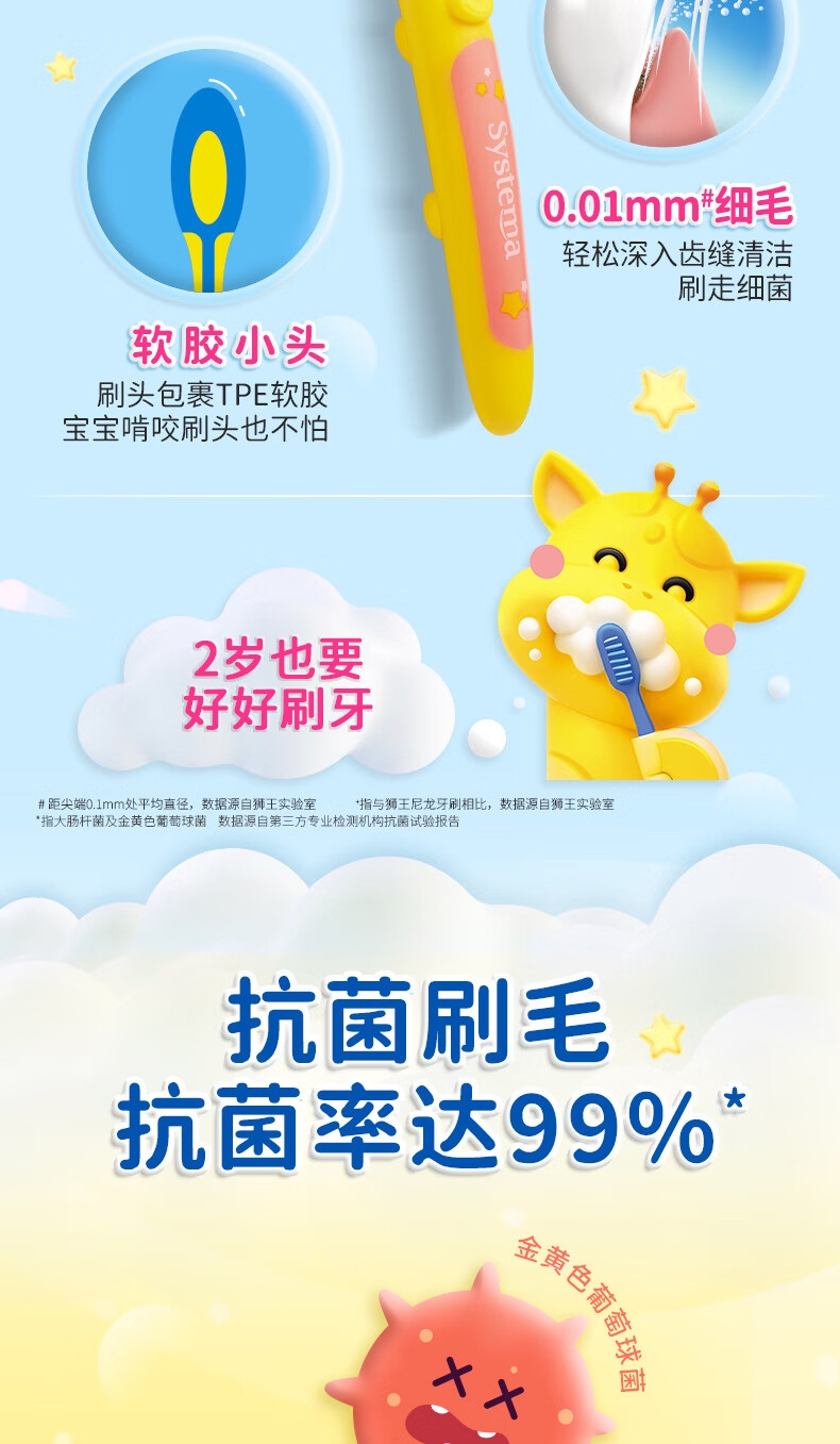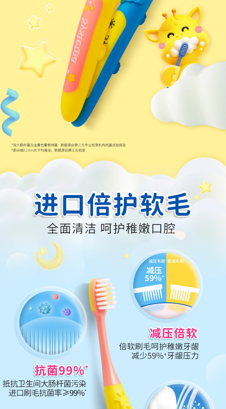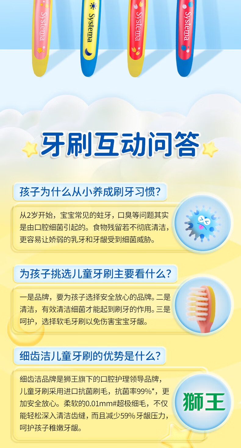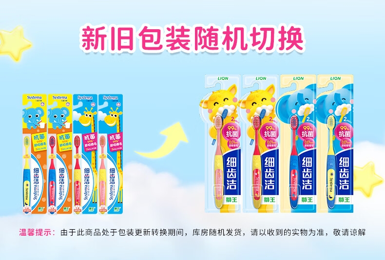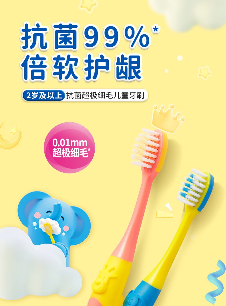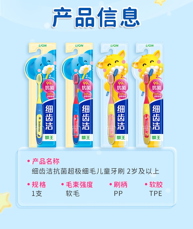 配置清单:狮王(Lion)细齿洁抗菌超极细毛儿童牙刷(2岁以上)*3支