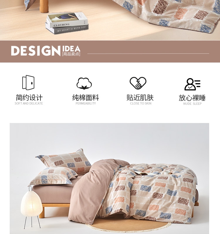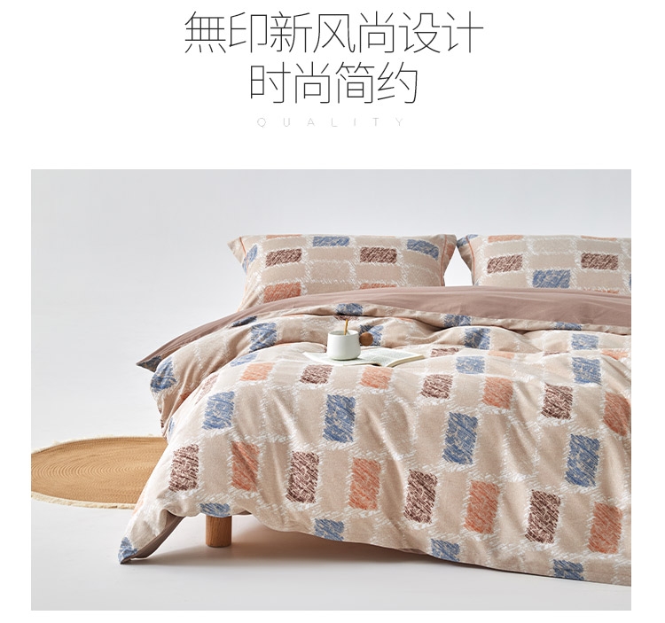 60支纯棉材质,高密度磨毛工艺,手感细腻冬日必选;创新的工艺,用心的品质,认真的细节,对用户最大的尊; 活性数码印花,無印新风尚设计,传承与创新