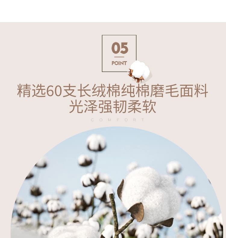面 料:60 支长绒棉纯棉磨毛