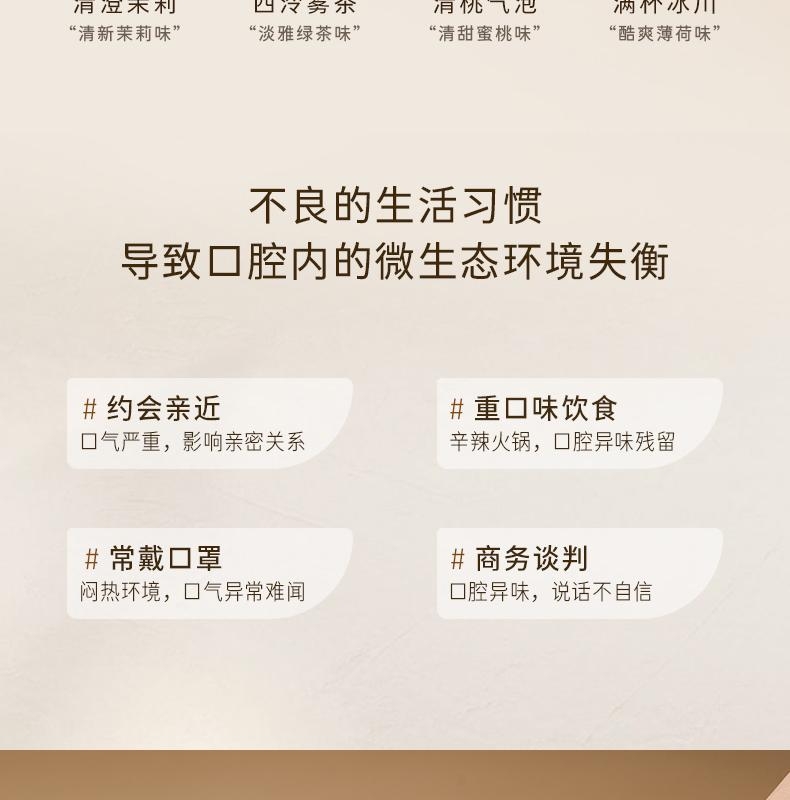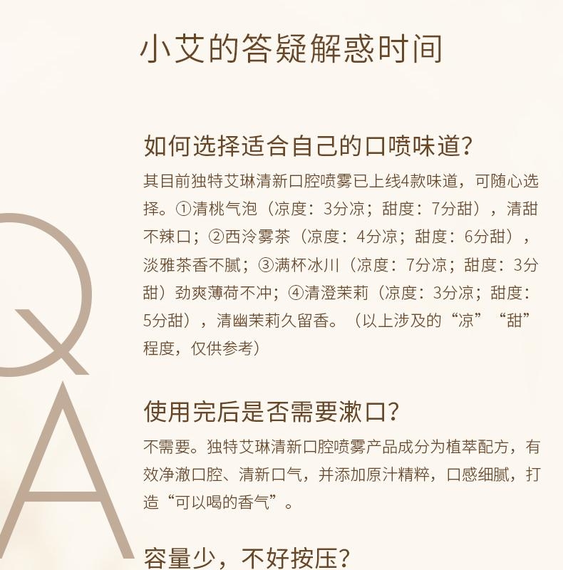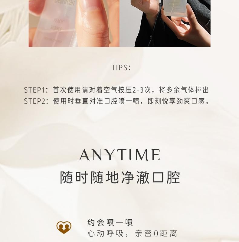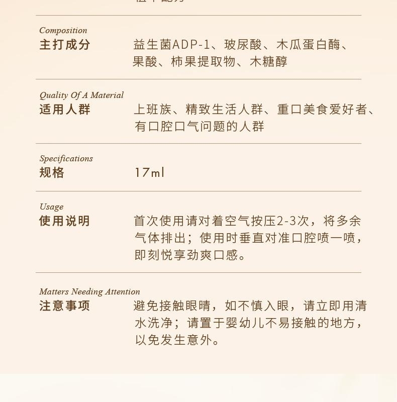 超薄卡片设计高雾化喷头可以随时随地净澈口腔;植萃配方可舒缓敏感温和保护口腔;抑菌净味多效清新口气自信开口拒绝口腔异味