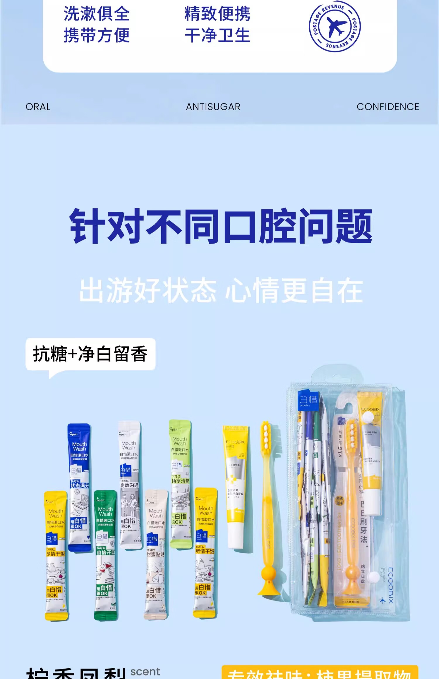 配置清单:旅行套装*1(牙刷*1+25g牙膏+漱口水12ml*7)